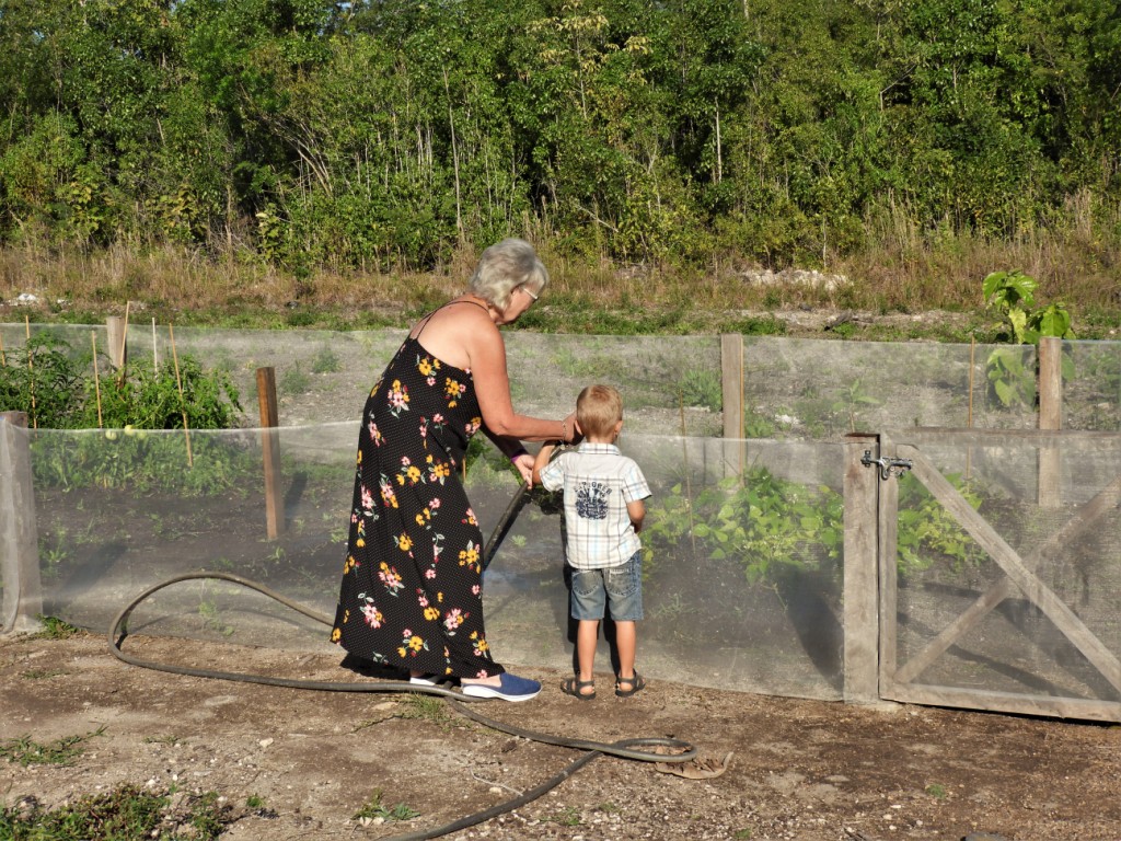 A peine un pied posé dans la petite ville de Corozal située au bord d’une jolie baie du même nom, nous faisons la connaissance de Nina. Cette texane d’origine russe fait construire son petit paradis en bord de mer. En attendant, elle garde la maison d’un ami rentré pour quelques mois aux U.S.A. Joyeuse, sociable, généreuse, spontanée, ouverte… le courant passe instantanément entre nous. Elle tombe totalement sous le charme de Léon qui est heureux de poser ses valises quelques jours et de l’aider à son jardinage.