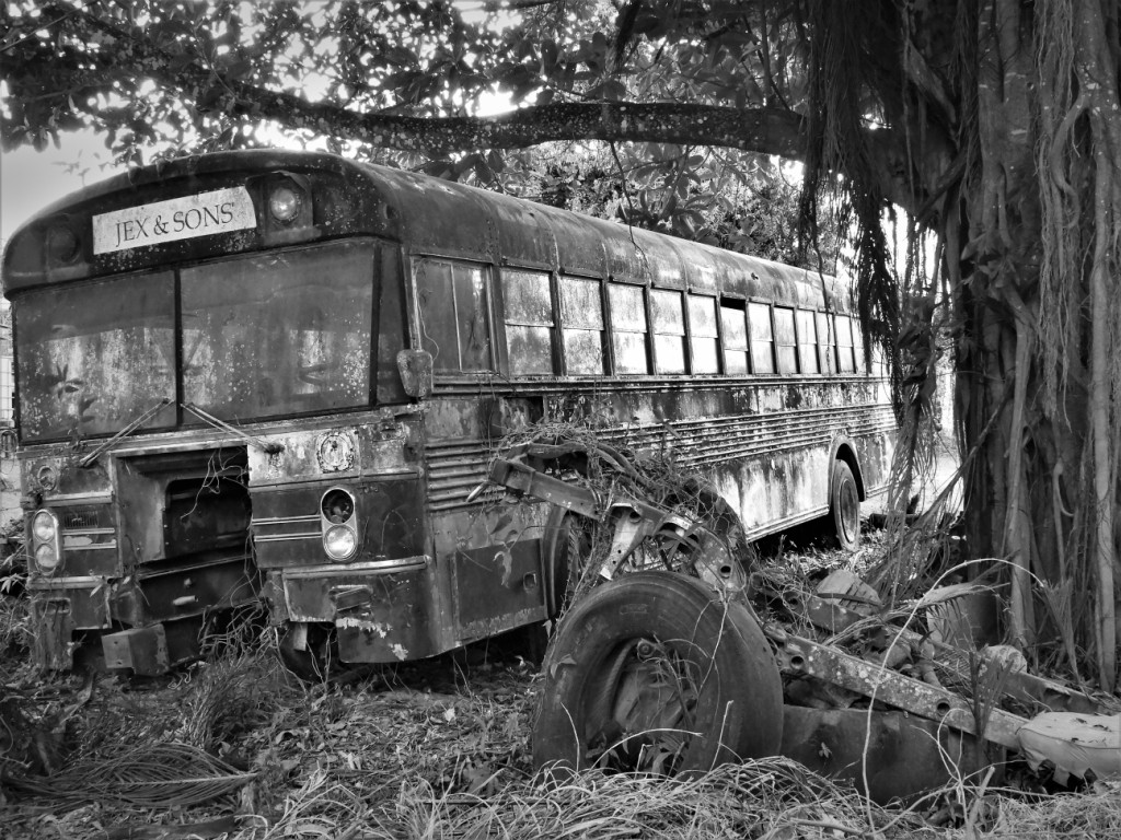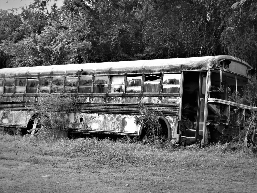 La vie semble s’écouler lentement et tranquillement dans le village. Seule la végétation croit rapidement et vient dévorer les bus scolaires totalement laissés à l’abandon…