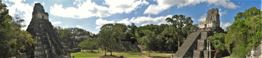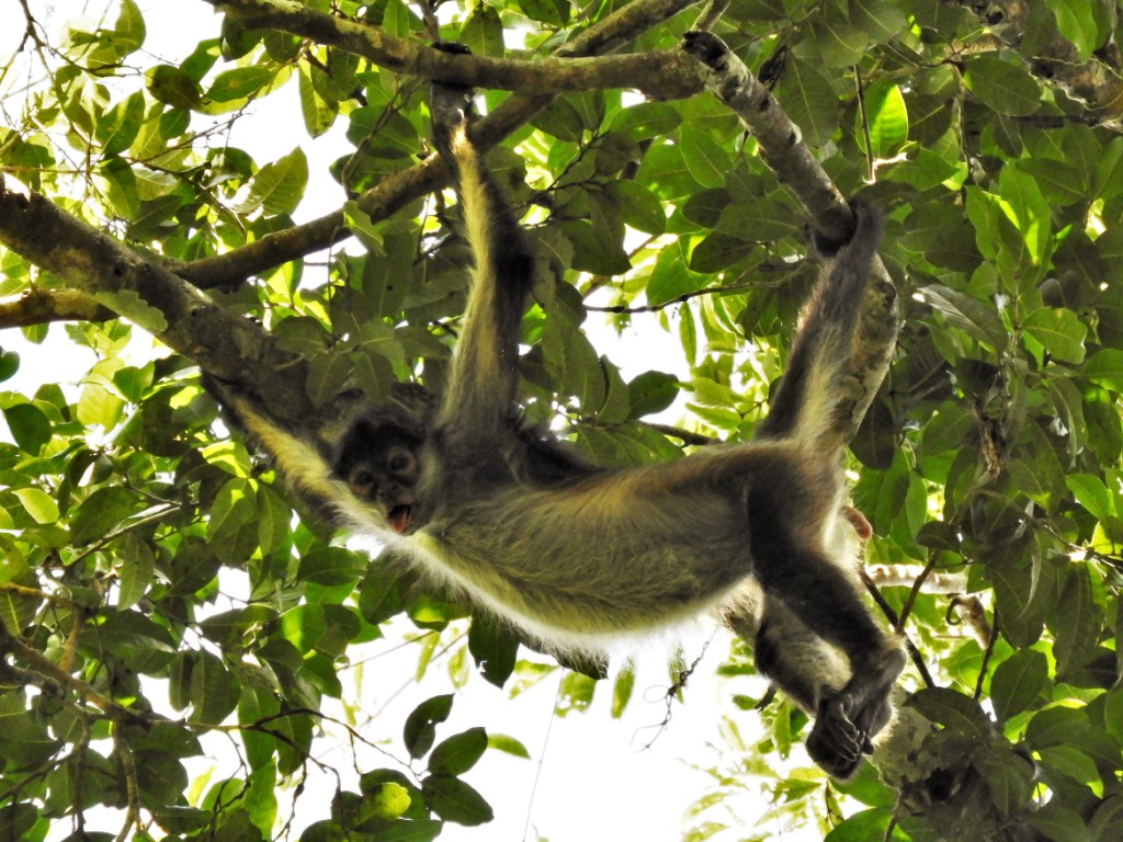 Nous nous levons aux aurores pour être à 6h à l’entrée du parc national renfermant la cité maya de Tikal. A cette heure-ci, la faune est incroyable. Nous observons les perroquets, les toucans, les pics verts batifoler à la cime d’arbres colossaux. Nous rencontrons des coatis peu farouches arpentant les chemins à la recherche de nourriture. Nous nous amusons avec les singes araignées qui jouent les acrobates et nous font des grimaces et des farces en nous jetant des branches, mine de rien…