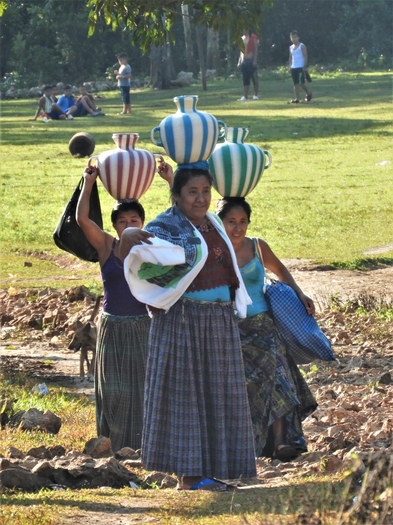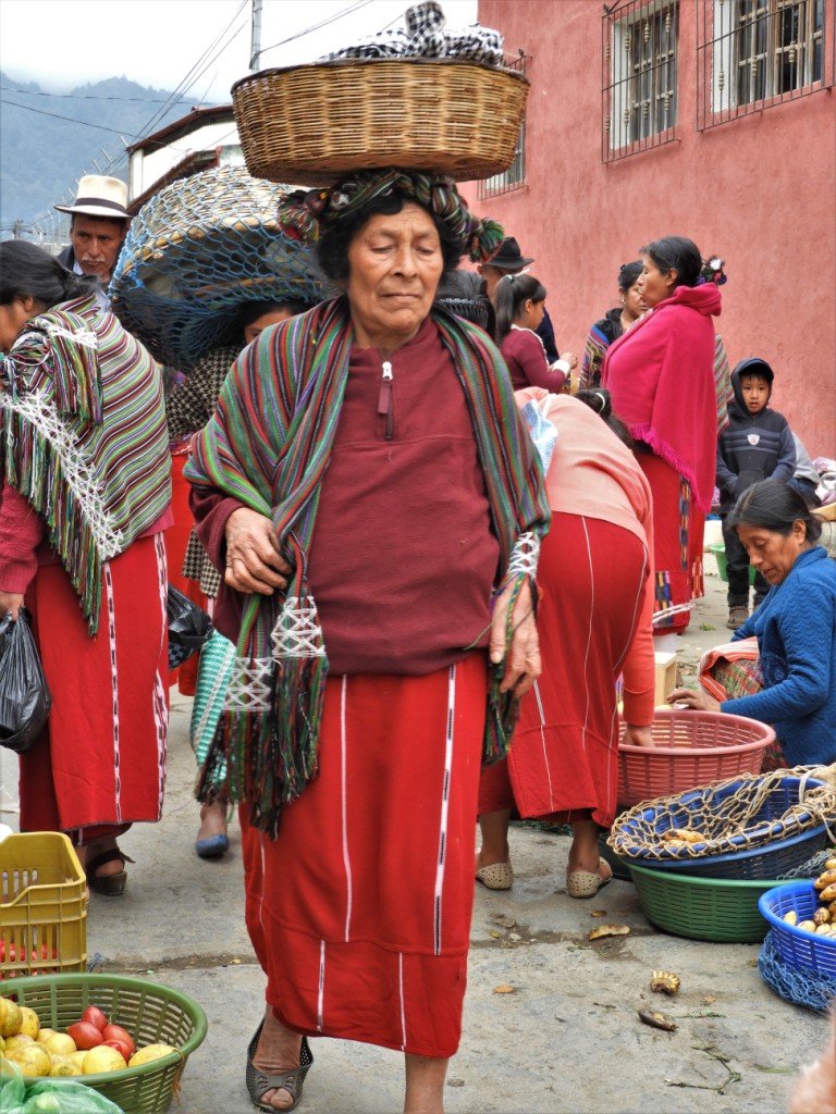 Ces femmes marchent jusqu’au marché de Santa Maria Nebaj avec leur bébé dans le dos pour venir vendre les quelques produits de leur terre, leurs travail de broderie ou venir acheter à l’occasion quelques marchandises qu’elles portent habilement sur la tête. On en prend plein les yeux !