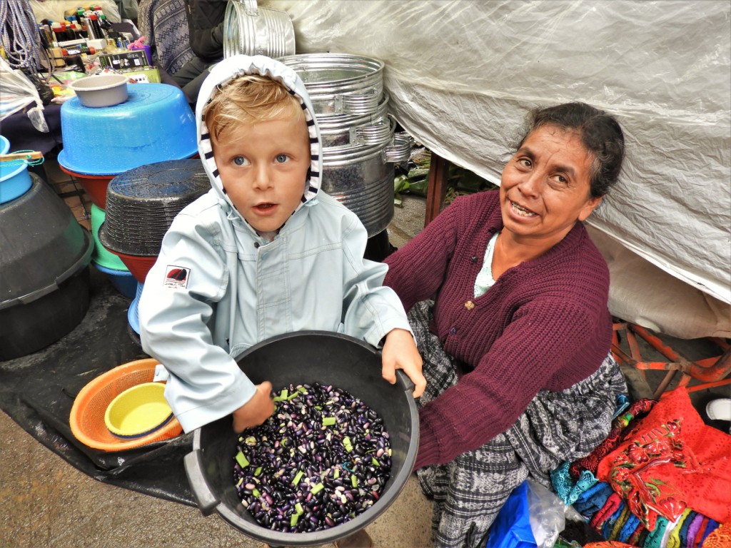 A San Juan Chamelco, nous bravons la pluie pour aller rencontrer les gens au marché où chacun vient vendre sa petite production de haricot ou ses quelques poulets.