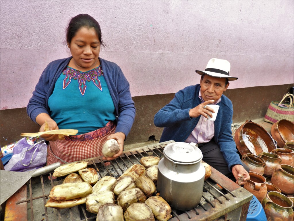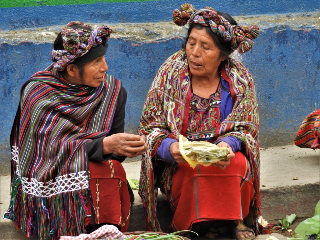 Ici, la vie est dure et encore très traditionnelle. Les femmes se parent de tenues splendides brodées composées d’un huipil, d’un corte et d’une cinta qui souligne la taille. Les tissus sont d’une variété et d’une beauté extraordinaire.
