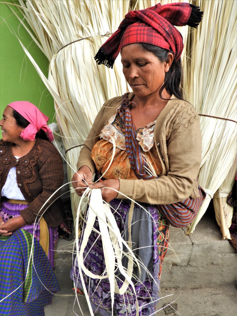 Nous descendons vers le sud et nous arrêtons dans le chef lieu, Santa Cruz del Quiché où le marché, immense, s’étend sur des dizaines de rue. On ne se lasse pas d’arpenter les allées à la rencontre des marchands et du travail artisanal si minutieux de certains, comme cette femme qui tressent des chapeaux à la vitesse de l’éclair.