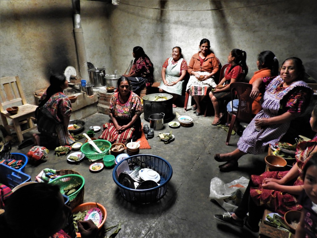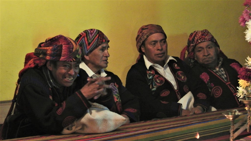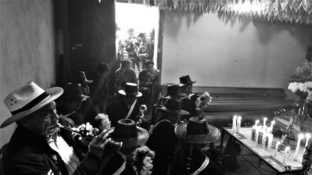 Chaque année dans son village sont élus des « gardiens » , responsables de prendre soin d’un « saint ». Pour cela, ils récoltent des dons auprès de la population afin de louer une maison spécialement pour y installer ledit saint et pour pouvoir se nourrir. Chaque dimanche, ils revêtent une tenue traditionnelle et arpente les rues du marché pour faire la quête. A leur retour, ils remettent les offrandes au saint et entament des chants rituels. Les femmes, debout depuis 3 heures du matin, se chargent de leur servir à boire et à manger. Un immense merci à tous de nous avoir permis de découvrir cette coutume mêlant traditions mayas et rites religieux.