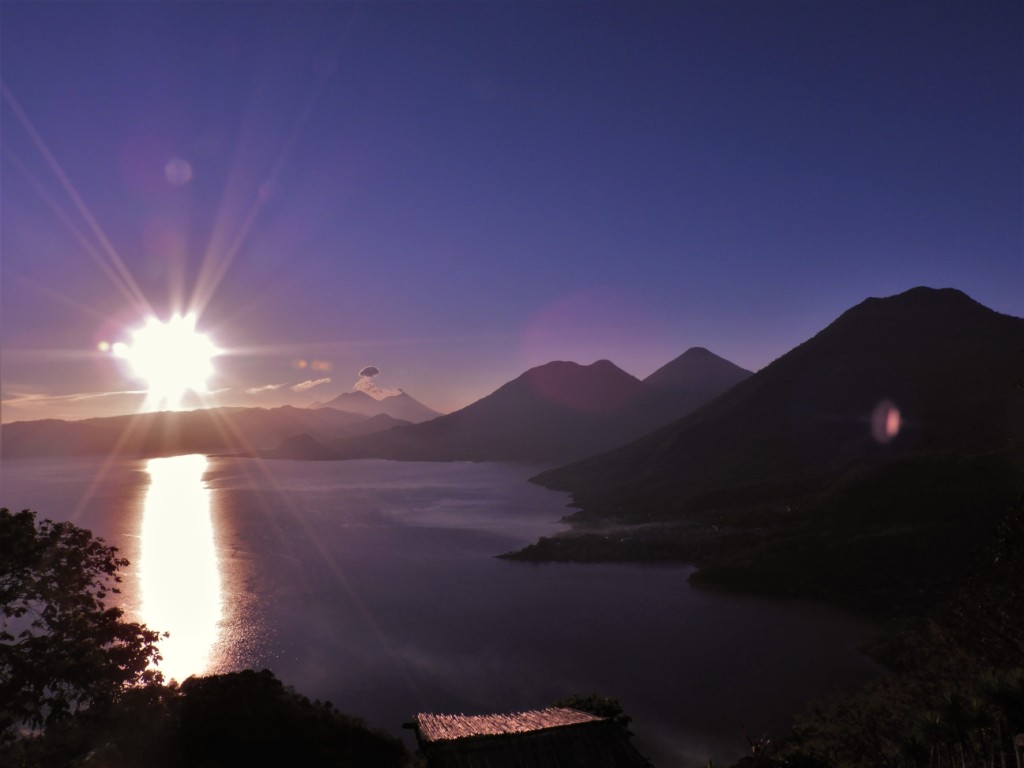 Nous roulons à présent vers le célèbre lac Atitlàn. Issu d’une éruption volcanique très ancienne, ce lac d’altitude est entouré par 3 volcans. La vue du haut de Santa Clara la Laguna est époustouflante.