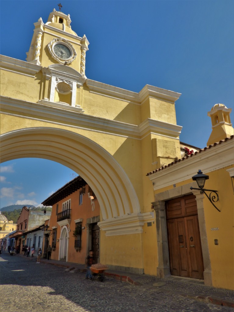 Nous voici à Antigua, capitale des conquistadors avant l’actuelle Ciudad de Guatemala. Ville coloniale typique, elle a tout pour plaire : chaussées pavées, maisons basses bigarrées, monastères anciens et même un cadre superbe avec le volcan Agua qui se dessine au bout des ruelles. De plus, des efforts ont été faits pour respecter l’architecture et le patrimoine : ici pas de vilaines enseignes sur les façades, peu de fils électriques, une ville propre. Mais du coup, une attraction à touristes en puissance !!! Malgré tout, un endroit où il fait bon flâner.