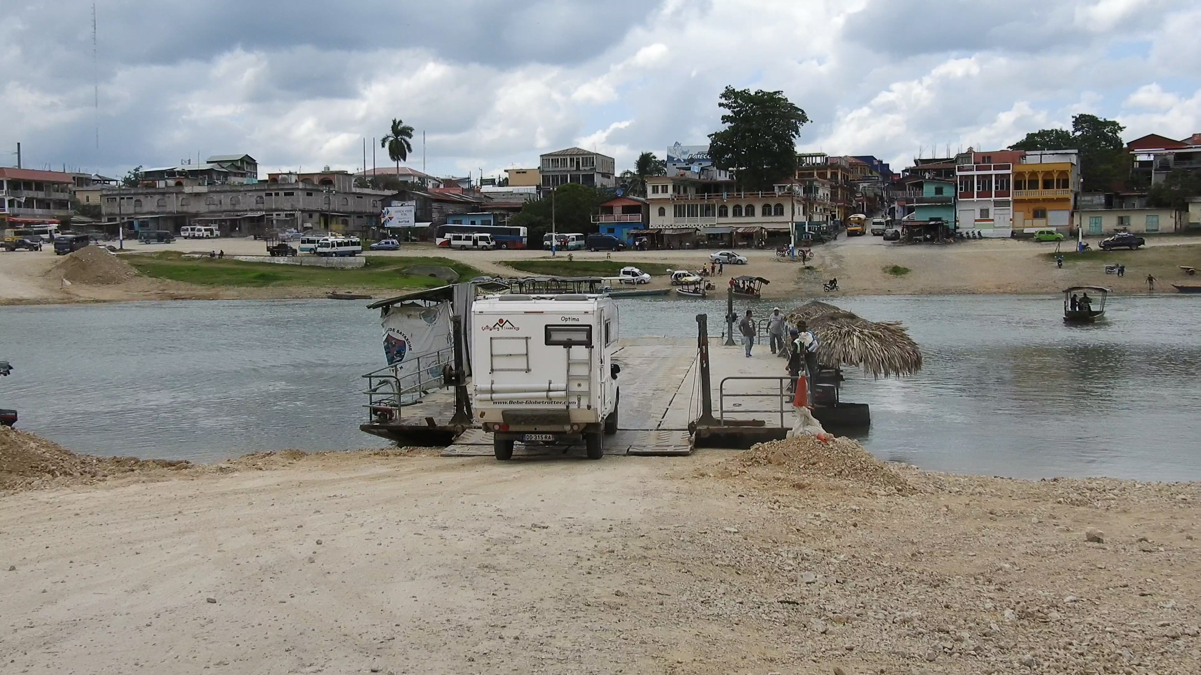 Nous prenons la direction de la région de l’Alta Verapaz en suivant une mauvaise route qui nous oblige à traverser une rivière par le biais d’une barque.