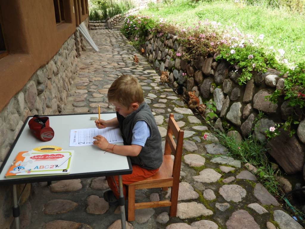 Léon retrouve vite ses marques et se remet aux apprentissages ! On organise aussi de petits travaux manuels pour passer le temps qui nous parait un peu plus long maintenant que nous nous retrouvons seuls (la propriétaire et son fils ne semblent pas réellement vouloir partager quoi que ce soit avec nous).