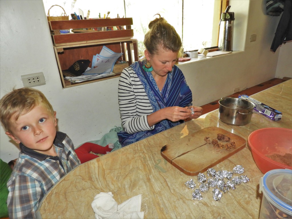 A l’approche de Pâques, Elo fabrique des chocolats avec un reste de pâte de cacao d’Equateur et organise une chasse aux œufs mémorable sous forme de jeu de piste à travers la ferme. Les enfants sont ravis. Léon est aux anges ! Il nous confie qu’il se souviendra longtemps de cette belle journée !