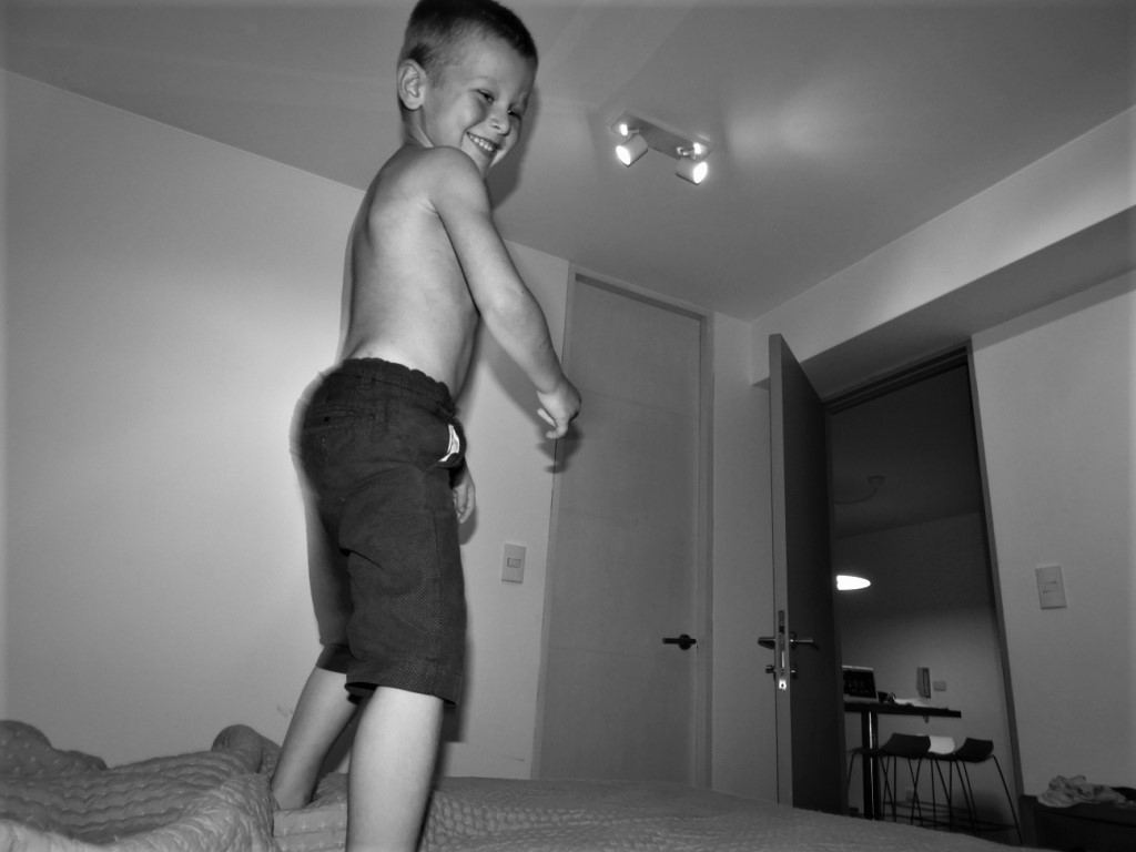 Le confinement est strict. Nous n’avons le droit de sortir avec les enfants sous aucun prétexte (en dehors d’une urgence medicale), nous devons aller faire les courses à pied avec masque et gant. Hugo voit des gens se faire embarquer par la police car ils n’en portent pas !