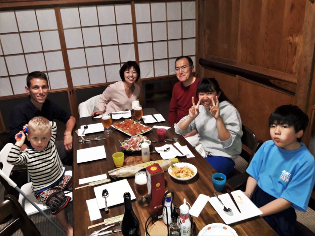 De retour à Ebina pour nos dernières démarches avant le départ, on retrouve Maki et Geemon. Nous sommes invités à nous joindre à une réunion de famille ! Merci à tous pour tous ces beaux moments passés ensemble. On se quitte en se promettant de se revoir, en France cette fois ci !