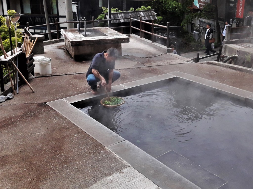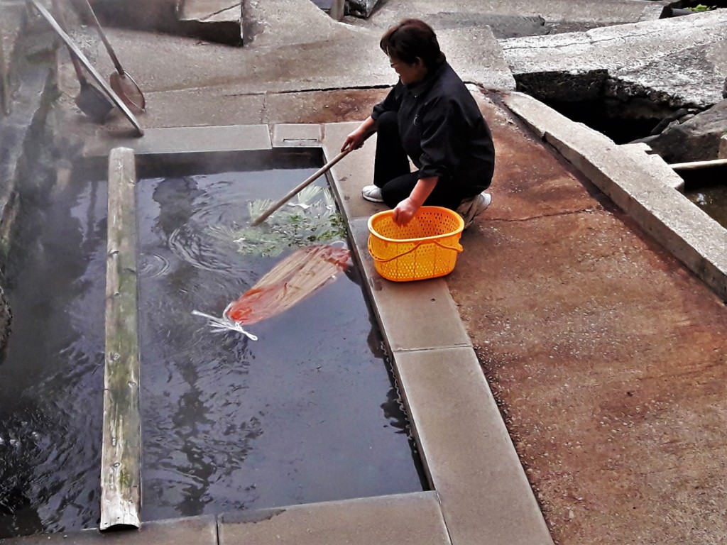 Nous nous arrêtons quelques jours pour faire la tournée des onsen et profiter du rythme tranquille de la vie à la montagne. En fin d’après-midi, les anciens se retrouvent en haut du village autour de bains bouillonnants où ils font cuire œufs et légumes en tout genre. On adore le concept !