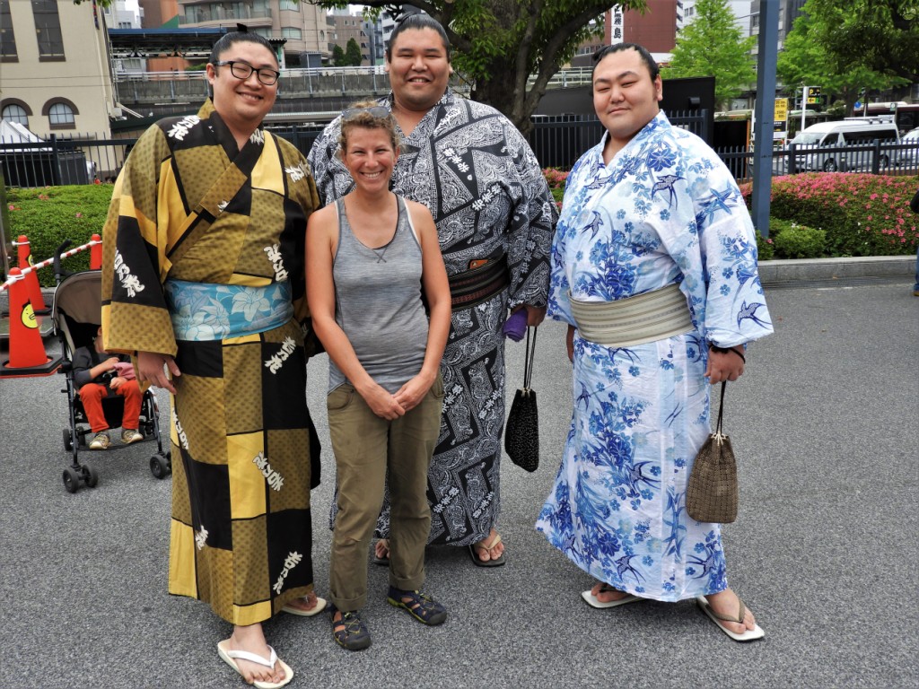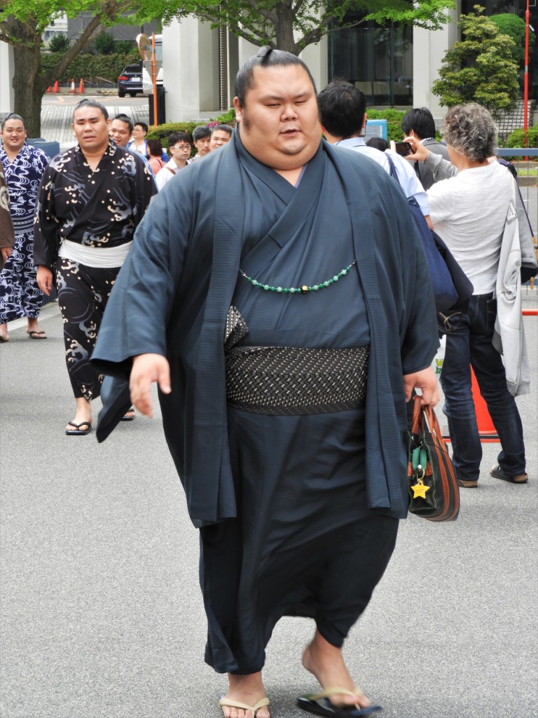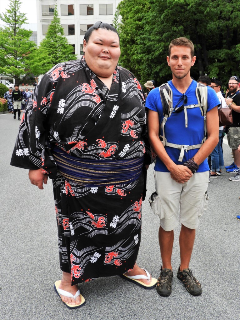 A Ryogoku, on peut aussi avoir la chance de croiser les mythiques rikishi, lutteurs de combat sumo, vêtus de leurs plus beaux kimonos et chaussés de claquettes en bois Une rencontre de taille !