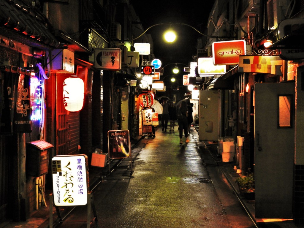 …ou dans les allées minuscules et intimistes de Golden Gai où des centaines de bars pouvant accueillir quelques personnes tout au plus, ne servent à boire qu’aux habitués.