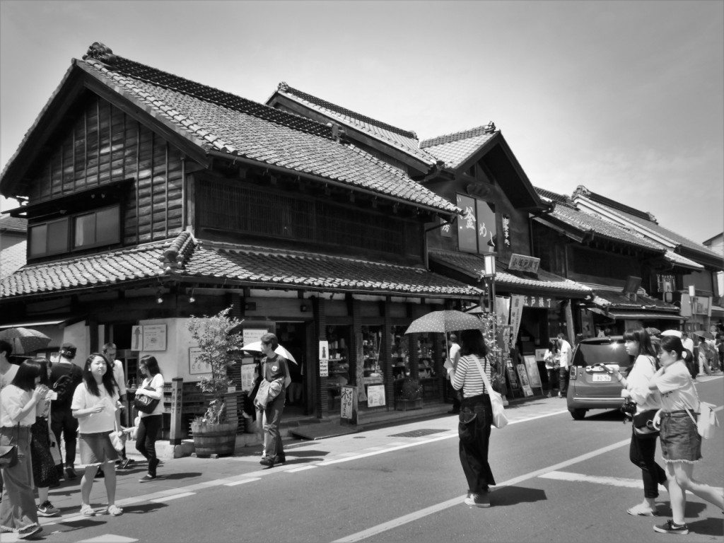 Nous partons en direction des montagnes et de la vie rurale de la région de Chibu, les « Alpes Japonaises ». En route, on fait un arrêt à Kawagoe où l’on peut observer de belles maisons traditionnelles servant de commerces à la période d’Edo avec de typiques volets « coupe-feu ». N’en déplaise à la beauté de l’architecture, la ville très touristique n’est qu’une succession d’échoppes abusant du pouvoir d’achat des japonais en leur vendant tout et n’importe quoi !