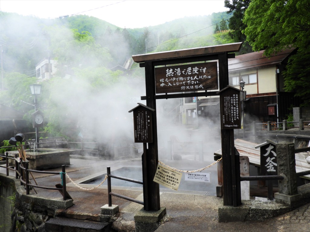 Nous franchissons cols et vallées pour arriver à Nozawa Onsen, une petite station de ski où parviennent 12 sources chaudes aux vertus différentes, alimentant de nombreux onsen, les thermes japonais. Les hommes et les femmes se baignent nus, séparément. Il est de bon ton de se laver avant d’aller se relaxer dans les eaux brulantes.