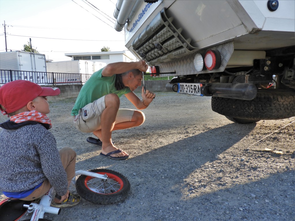 Avant de quitter la mégapole, on fait un arrêt en périphérie de Tokyo pour emmener Léon visiter un musée des sciences pour les enfants hyper bien fait. On fait alors la rencontre de Ievan, un français originaire de Romans qui a fréquenté le même lycée qu’Elo. Trop ouf ! Pâtissier de formation, il a monté son food-truck avec sa femme japonaise Manami. Ils nous invitent à partager un repas et Léon sympathise bien avec leurs fils. Un grand merci à tous les 3 pour votre accueille chaleureux et ce bon repas. 😉