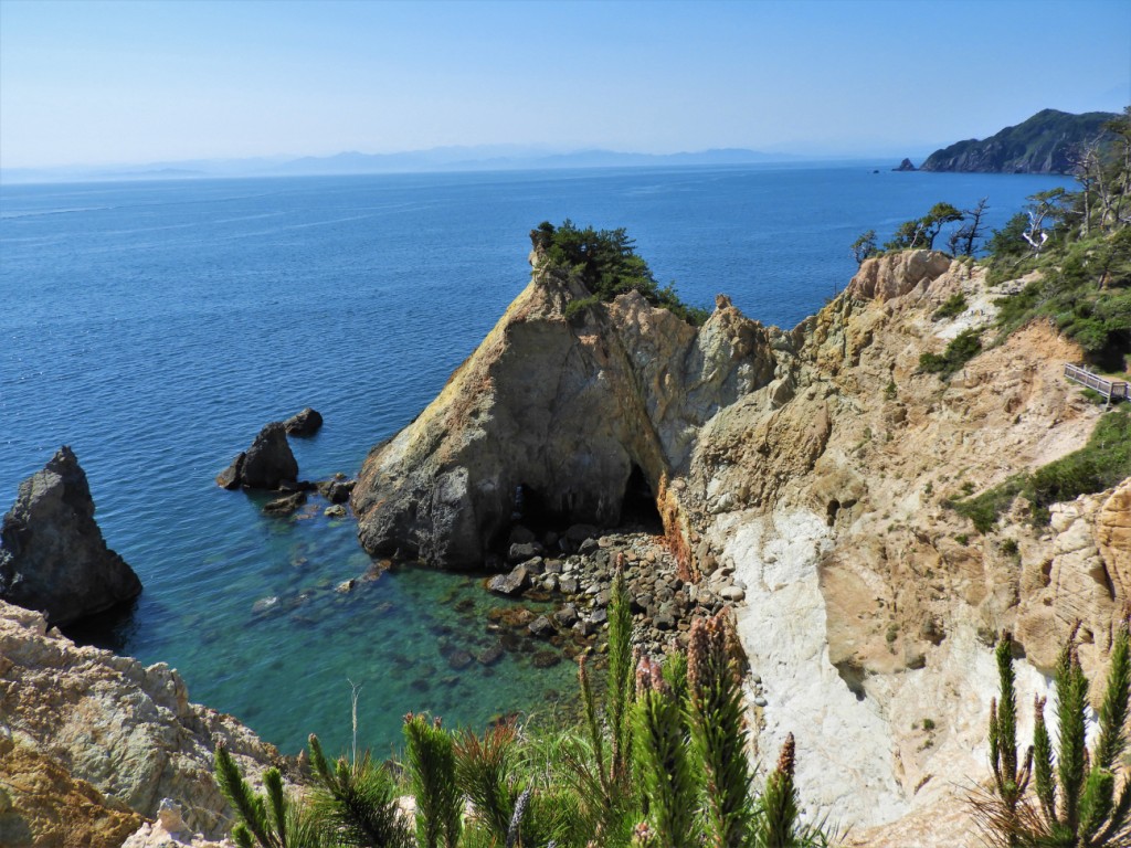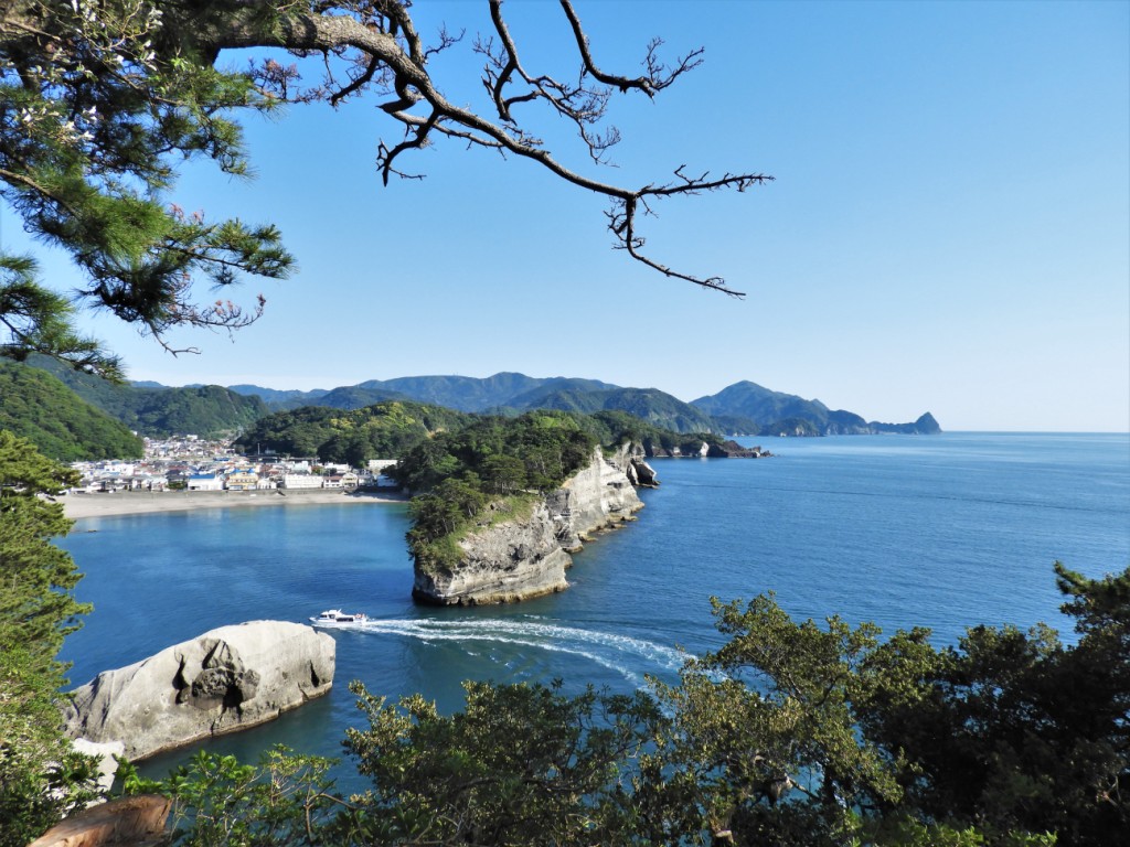 Nous longeons la côte ouest de la péninsule d’Izu où les baies et les falaises se succèdent, encadrées par des montagnes verdoyantes.