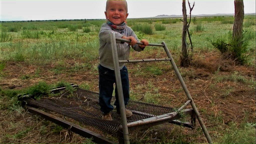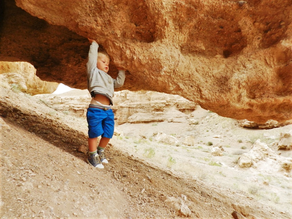 Nous bifurquons légèrement vers le nord, le temps d’aller admirer un champ de pétroglyphes. En route, on se trouve un joli bivouac où Léon improvise une séance de trampoline sur un vieux sommier à ressort rouillé posé au milieu de rien !