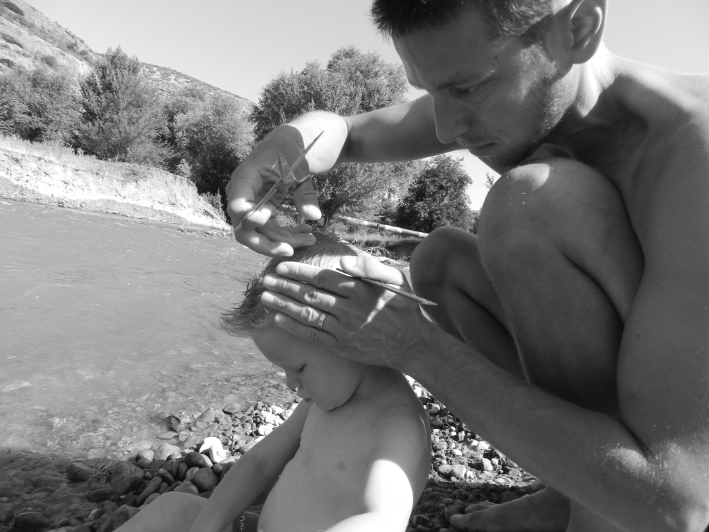 Papa prend le temps de faire une nouvelle coupe à Léon qui n’est pas du tout coopératif !!!