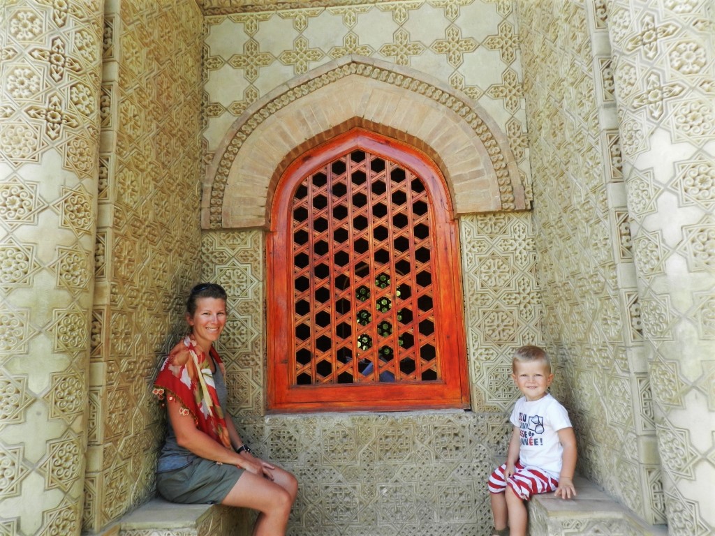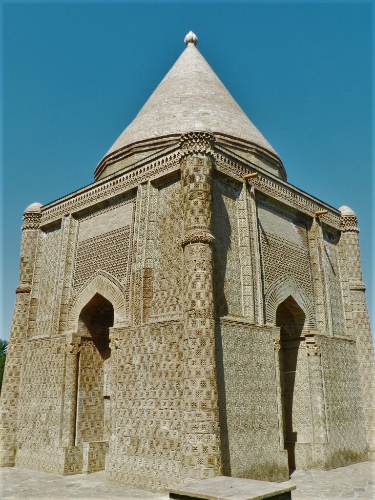 Près de Taraz, nous nous rendons au mausolée de Aisha Bibi. Selon les locaux, ce mausolée symbolise l’amour car une légende raconte que la femme enterrée ici est morte de chagrin de n’avoir pu épouser l’homme qu’elle aimait.