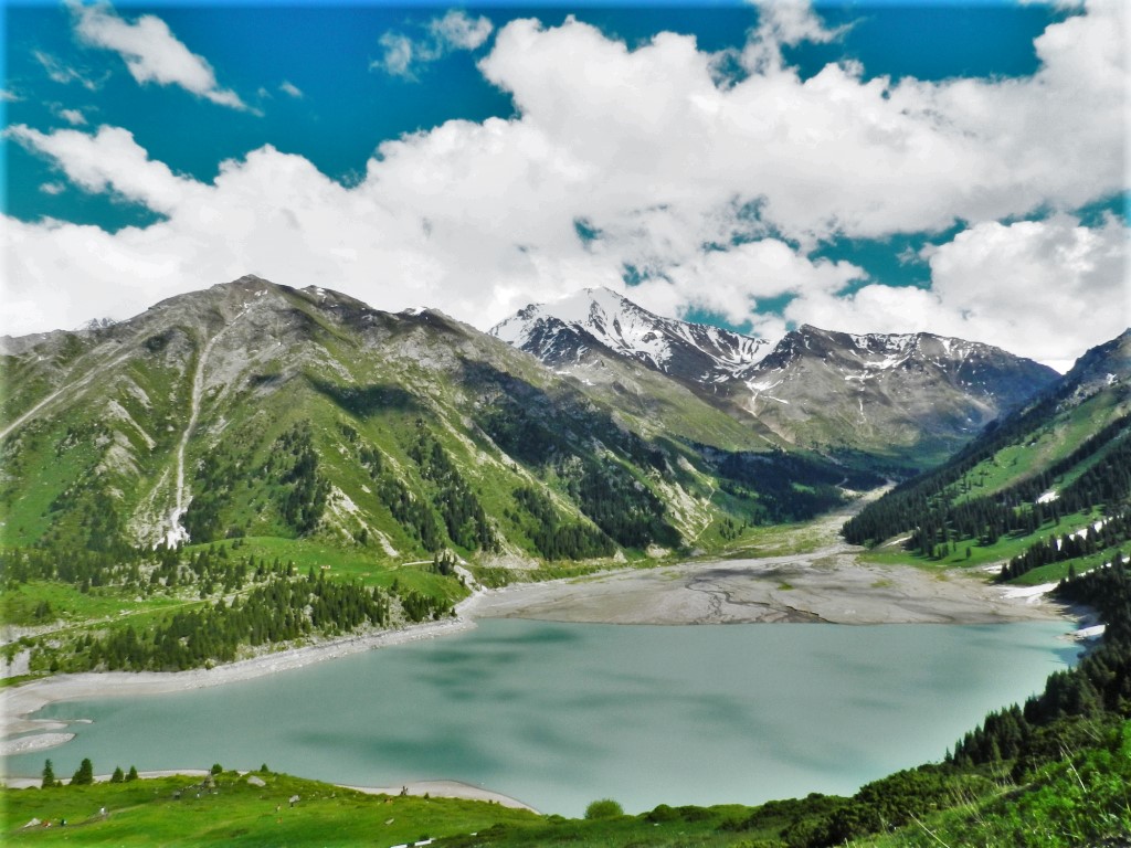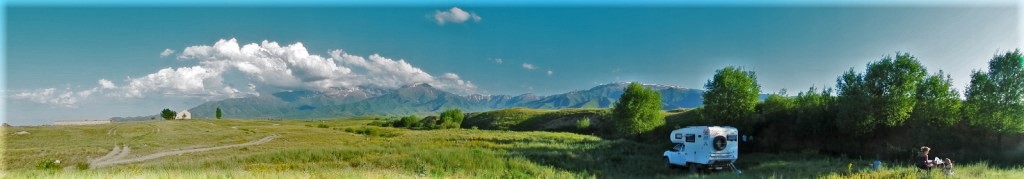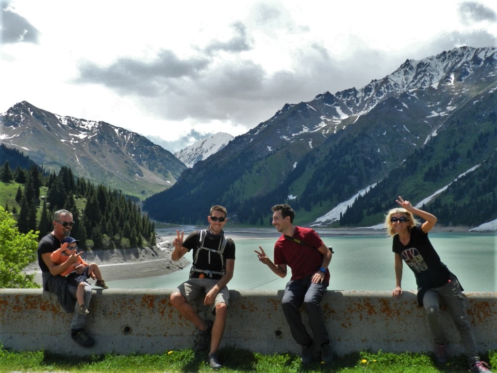 On se rend au parc national d’Alatau qui s’avère franchement pourave (restos sur les bords des routes, lignes à haute tension partout, pipe line d’eau au milieu du parc…) ! En plus, on est ennuyé 3 fois par la police et les gardes du parc en 48h ! On arrive à saturation de la police Kazakh ! Cela ne nous empêche pas de passer un super moment ensemble et d’admirer la jolie vue sur le lac en haut du parc.