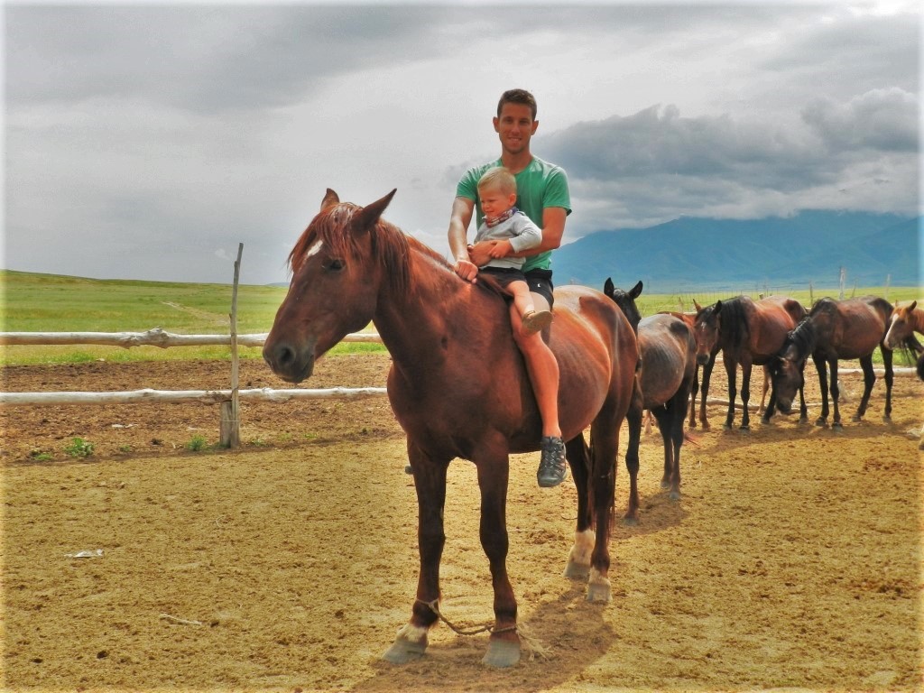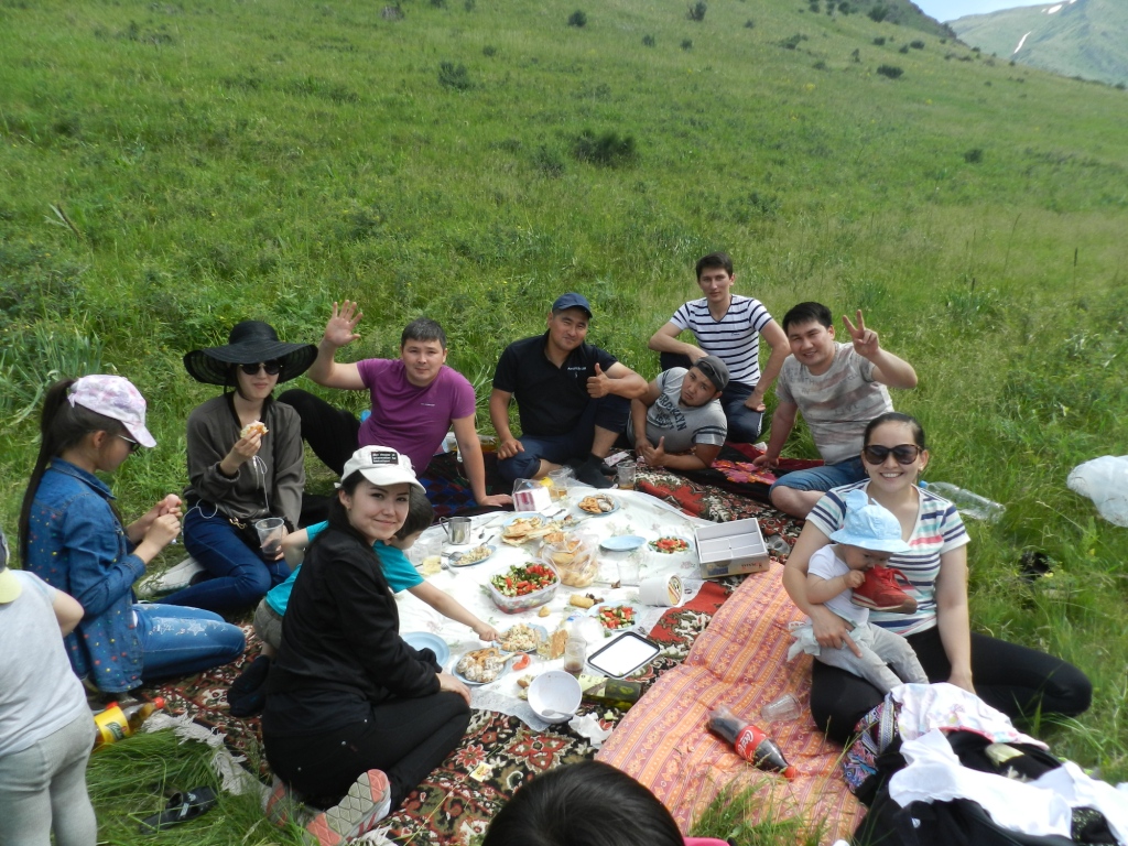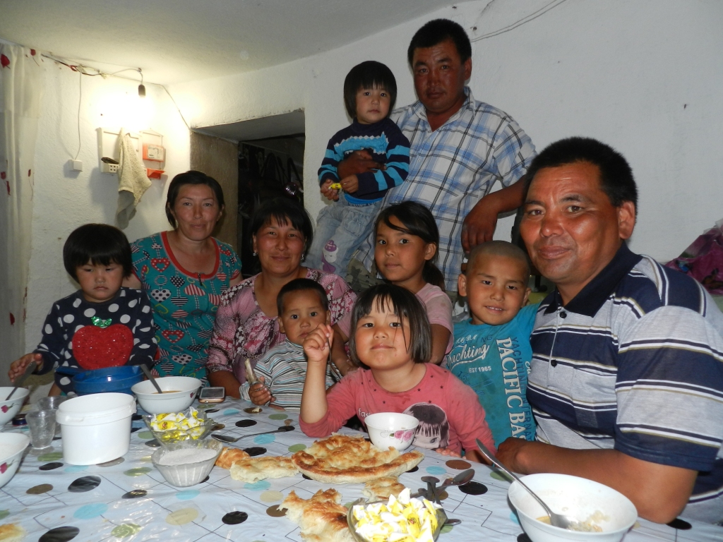 Le midi, nous sommes invités à partager un pique-nique champêtre avec leur famille de la ville à l’occasion duquel on déguste le plat national, le Beshbarmak, sorte de mijoté de viande de cheval ou de mouton avec des pommes de terre et des herbes.