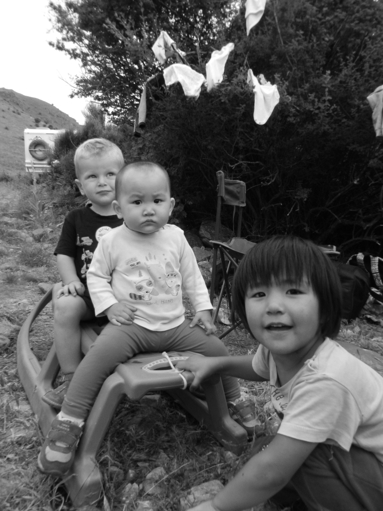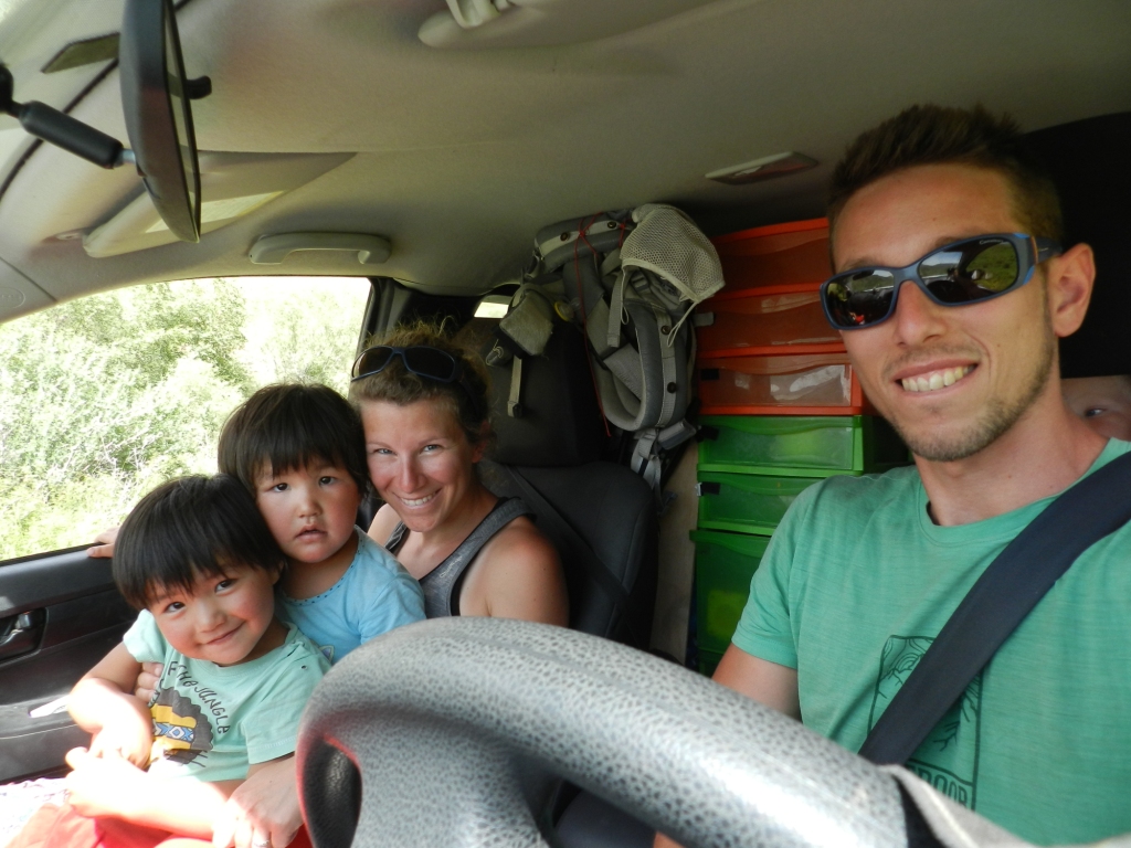 Pendant que l’on s’affaire à préparer nos bagages, Léon sympathise avec une mendiante et sa fille et devient rapidement leur comptable attitré ! Le garage Isuzu d’Almaty nous garde très gentiment la voiture alors que nous rentrons un peu plus de 3 semaines en France (en mode manouche) pour un retour temporaire à la sédentarité.