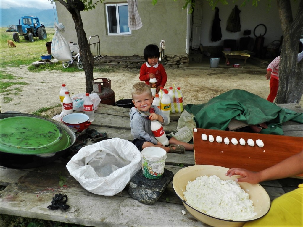 Pendant ce temps, Léon, profite de la fabrication du kumiss (lait de jument fermentée) et des kourouts (boules de fromage au lait de jument) pour s’en mettre plein la panse ! Toujours fourré dans les bons plans celui là…