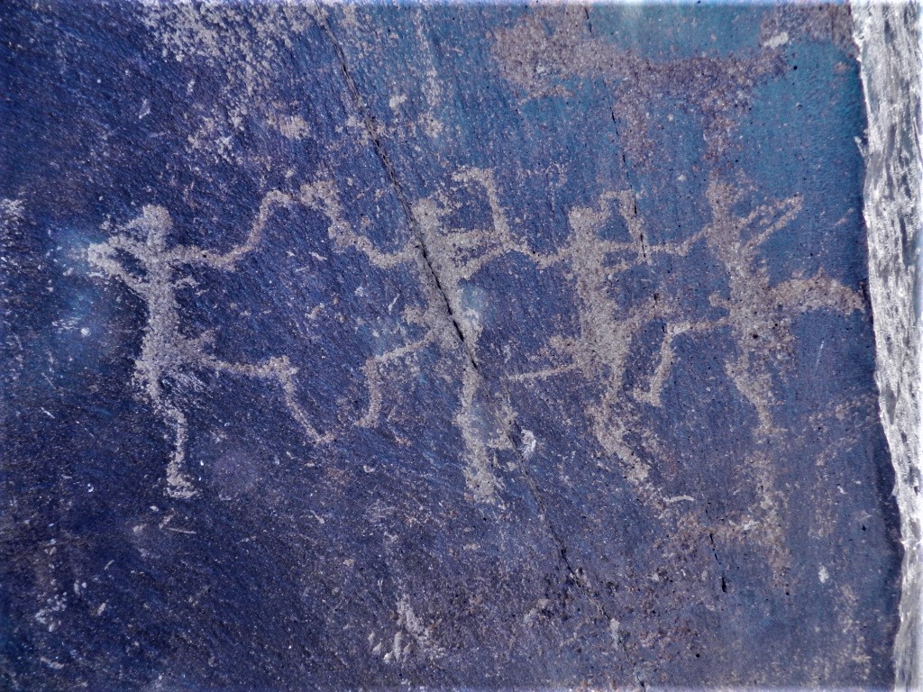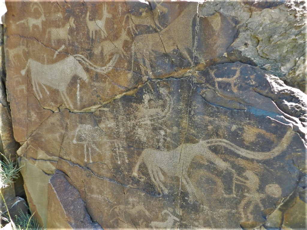 Nous découvrons avec bonheur les pétroglyphes de Tamglia, ces pictogrammes gravés dans la roche par l’homme à différentes périodes et dont les plus anciens remonteraient à plus de 1000 ans avant J-C. On peut admirer des animaux en tout genre mais aussi des scènes de chasse, et de danses tribales.