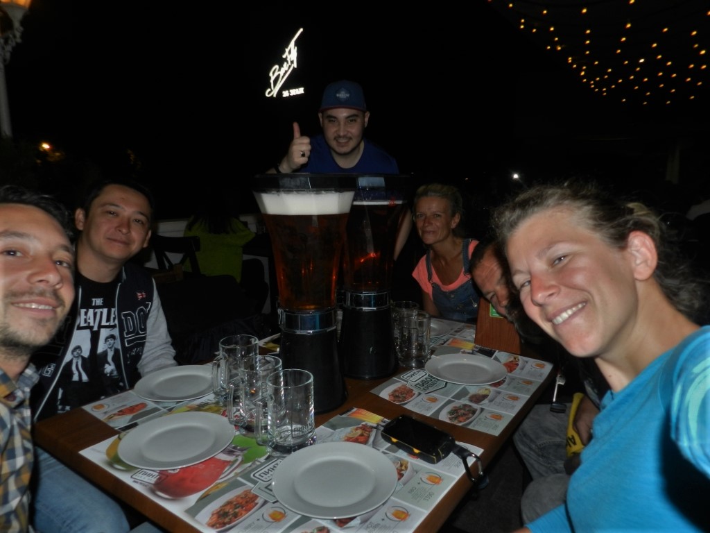 A Almaty, on rencontre Alisher et ses potes qui nous emmènent visiter la ville « by night ». On prend le téléphérique pour nous rendre sur la colline et on boit « quelques » canons dans les bars branchés. Un grand merci à eux pour leur accueil et leur générosité !