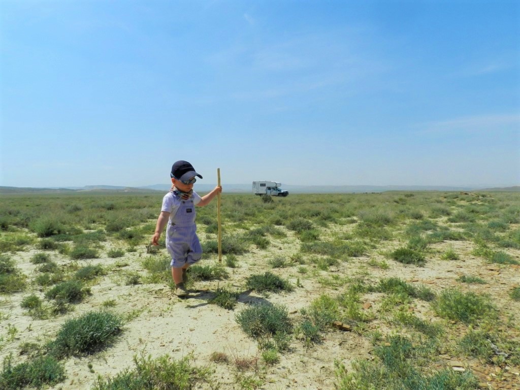 Il est temps à présent pour nous de tourner définitivement la page du Kazakhstan et de nous aventurer vers d’autres contrées. Le déroulement du voyage nous a conduit à entrer et sortir de nombreuses fois du territoire à différents endroits. L’arrivée à l’ouest, au bord des côtes de la Caspienne a été très dépaysante. Nous faisons nos premiers pas en Asie Centrale et découvrons son désert : chameaux, rongeurs curieux et grandes steppes vierges d’habitants… On adore.