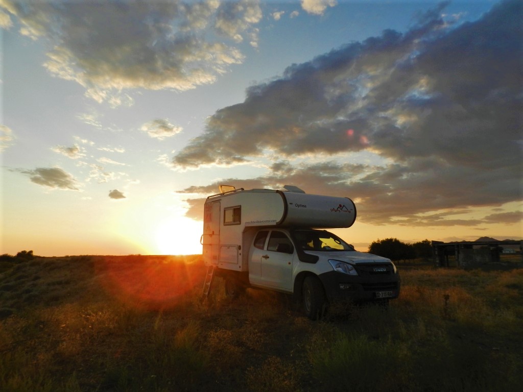 … quand un matin, on croise un véhicule français qui semble être aménagé pour le voyage. Après plusieurs kilomètres et quelques démonstrations de testostérone, on finit par s’arrêter et on fait la connaissance d’Albane, Manu et de leurs 3 filles Erika (8 ans), Salomé (6 ans) et Pénélope (4 ans) partis de Paris pour 1 an.