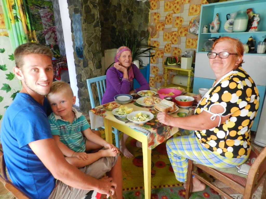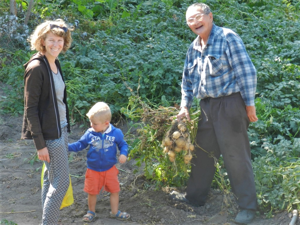 Dans le village tout proche, alors que nous cherchons à acheter des pommes de terre, nous rencontrons Liuda qui nous invite à la suivre chez elle pour nous offrir quelques patates du jardin. Finalement, son amie Tatiana et elle improvisent un super repas et nous repartons avec au moins 15 kilos de fruits et légumes du potager ! Merci à vous pour votre incroyable gentillesse…