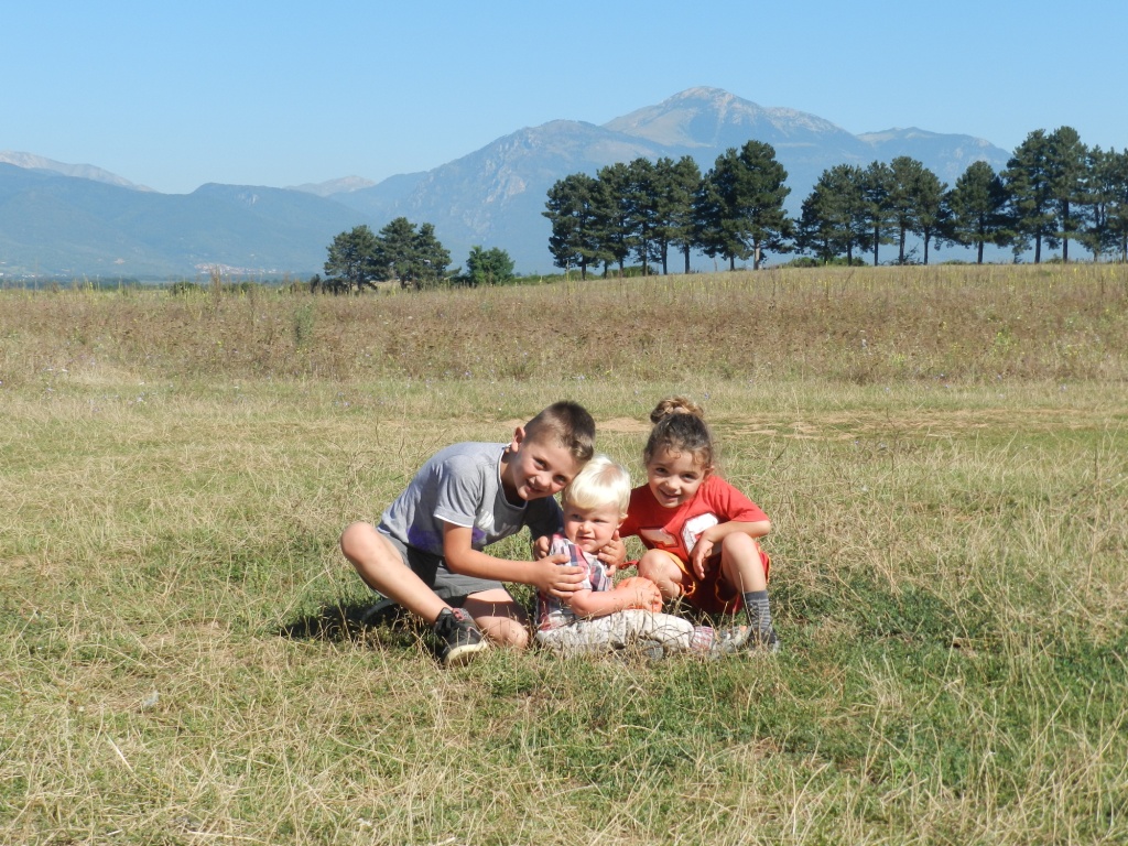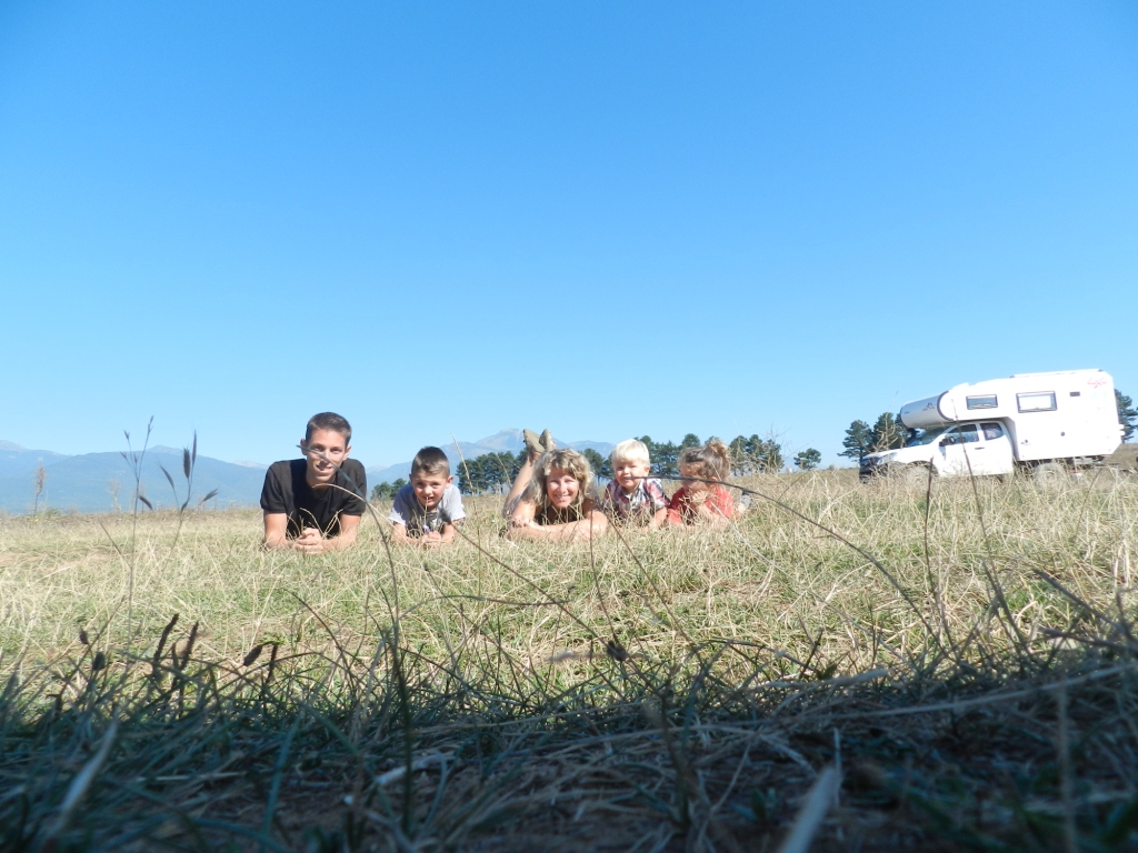 Le Kosovo est réputé pour avoir conservé de grandes traditions d’hospitalité. Nous avons été effectivement volontiers invités alors que nous cherchions un champ pour passer la nuit. Halil nous a offert le café et la rakia (eau de vie) puis du fromage et du yaourt maison ainsi que des gâteaux. Il était assis par terre, pendant que nous étions sur le canapé ! Gênant lorsque l’on n’est pas habitué ! Comme c’est souvent le cas ici, il vivait sous le même toit que deux de ses enfants et ses 2 petits enfants, Arhianett et Shkodran.