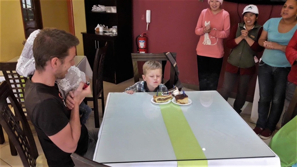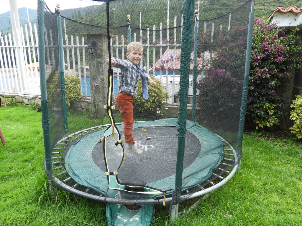 Léon profite aussi du trampoline mis à disposition dans le parc avant de souffler fièrement ses 5 bougies sur les pâtisseries trouvées miraculeusement le matin à la ville ! Cumple años feliz amorcito ! Te amamos mucho !