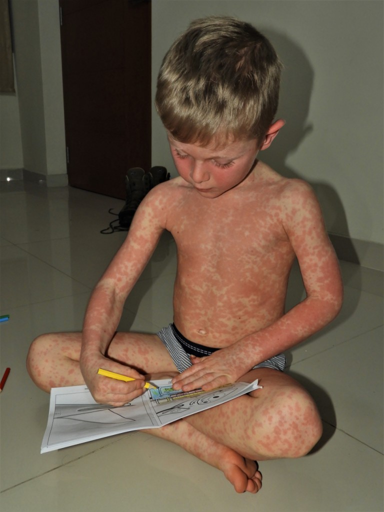 De notre côté, à noter, quelques turbulences… Notre lord Léon, qui aime bien nous faire de petites farces les veilles de départ, a déclaré une virose éruptive carabinée et s’est retrouvé aux urgences 2h avant le décollage. A notre arrivée à Lima, nous prenons donc nos quartiers quelques jours dans un appartement le temps de remettre de l’ordre dans la cellule, de laisser Léon se remettre et de s’habituer au choc climatique puisque nous entrons brutalement dans l’été chaud et humide Péruvien.