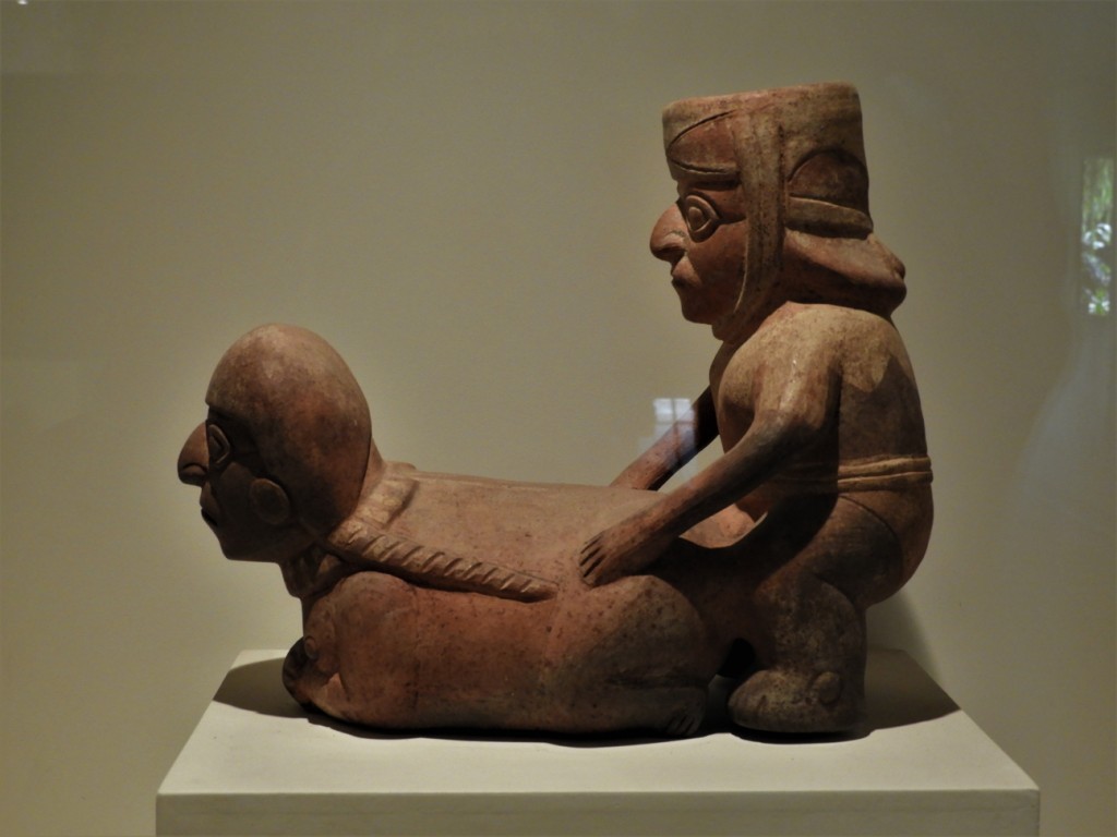 Une salle entière est dédiée à l’art érotique, avec des œuvres très évocatrices… Selon la cosmovision des péruviens précolombiens il existe un équilibre et une complémentarité entre les opposés tels que le jour et la nuit, le ciel et le monde sous-terrain, l’homme et la femme… L’accouplement de l’homme et de la femme permet en quelques sortes de maintenir cet équilibre. Ces objets étaient des objets de rituels selon les archéologues. On peut aussi imaginer que les hommes de l’époque avaient déjà l’esprit un peu coquin…