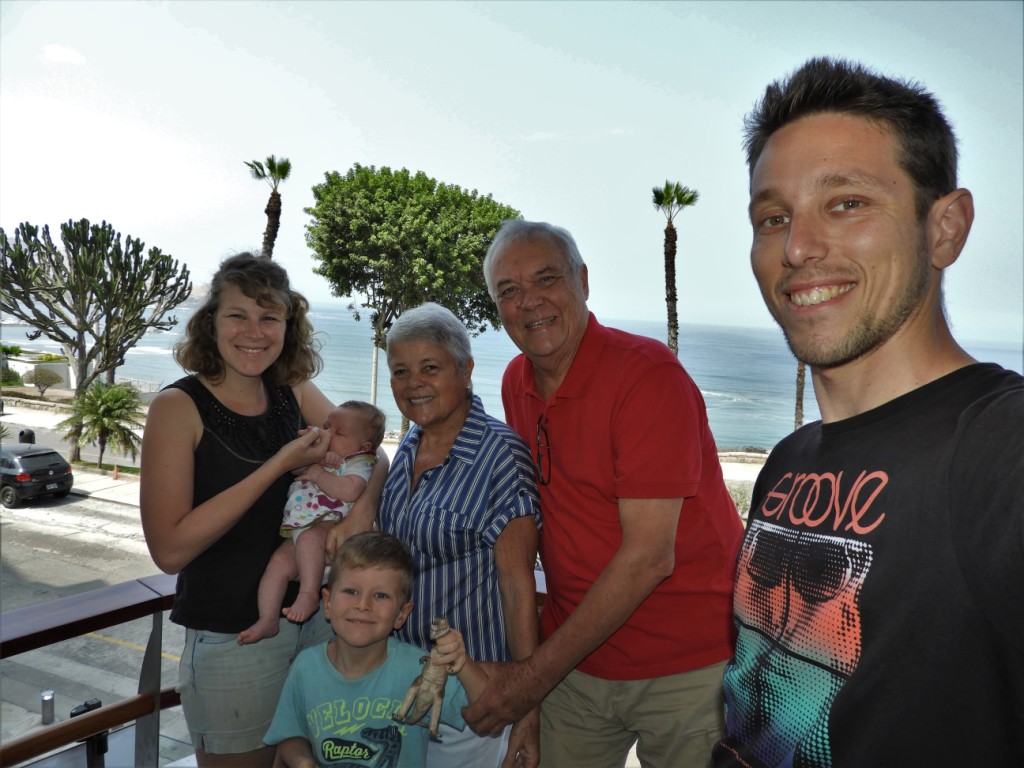 Alors qu’il nous reste quelques démarches à effectuer dans la capitale (achat d’une assurance et de nouvelles batteries auxiliaires), nous nous installons sur un spot surplombant l’océan, en plein quartier branché de Baranco. A peine sortis de la voiture, nous sommes accostés par un voisin qui, au lieu de nous virer comme nous nous y attendions, nous invite à nous rafraichir dans son appartement. Nous passerons finalement 2 jours reposant avec Francisco et Martha, qui nous aide dans nos démarches et nous chouchoutent tous les 4. Ils nous invitent même à partager un excellent repas avec leur gendre au club de régate de Lima… S’il vous plait ! Un énorme merci à tous les 2 pour votre gentillesse et votre générosité ! Hasta luego, en Francia !