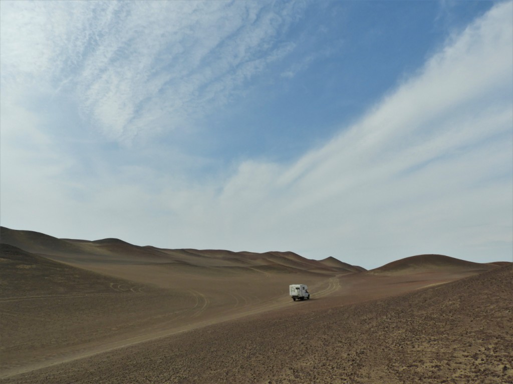 Nous choisissons de sortir de la réserve par la petite porte et traversons des kilomètres de désert superbes avec en prime, quelques frayeurs dans les dunes…