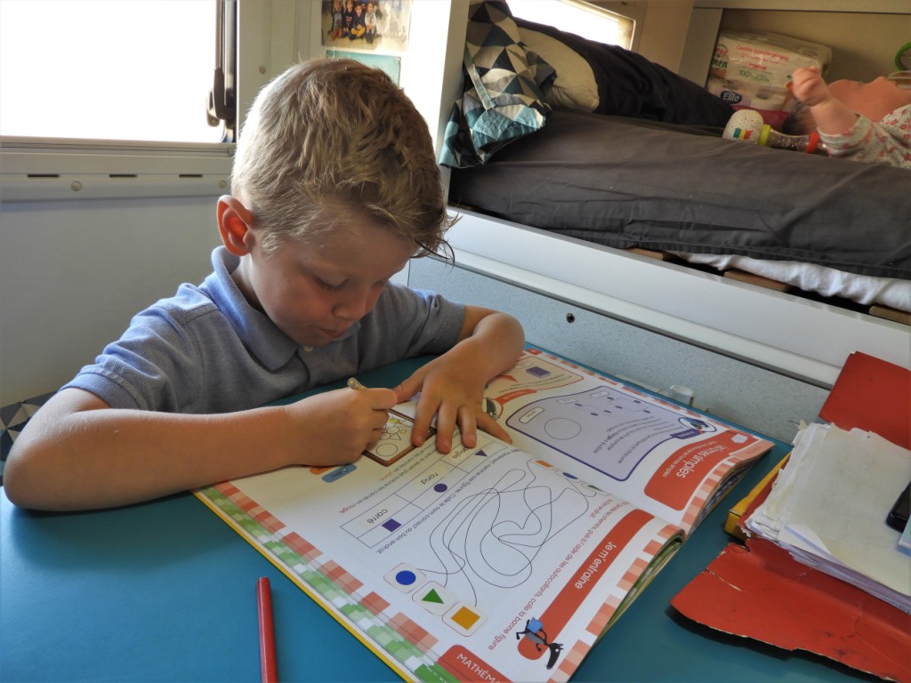 Déjà quelques semaines que nous sommes au Pérou et Léon ne perd pas les bonnes habitudes acquises à l’école lors de son séjour en France. Il travaille avec entrain et assiduité grâce aux différents outils pédagogiques offerts par nos proches avant le départ.