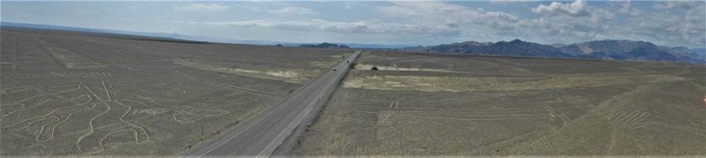 Nous arrivons dans la chaleur du désert de Nazca où ont été tracées les fameuses lignes mystérieuses par différents peuples précolombiens. Nous découvrons d’abord les dessins anthropomorphes tracés sur des collines par les Paracas et antérieures à celles de Nazca.