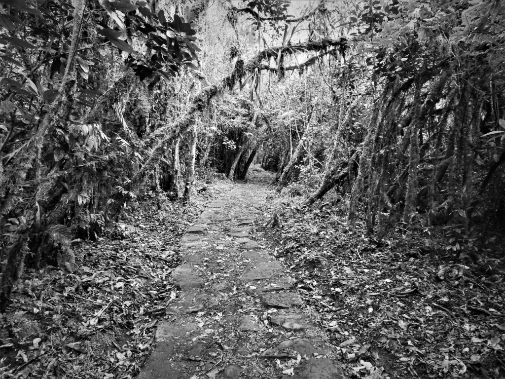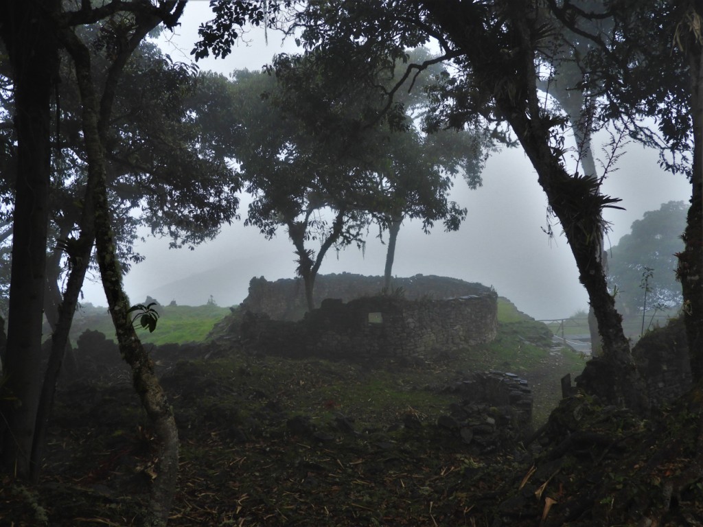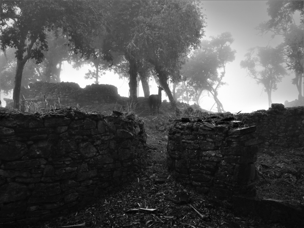 Les Chachapoyas ou « guerriers des nuages », ont aussi laissé derrière eux une gigantesque forteresse appelée Kuelap, perchée à 3000m d’altitude sur une montagne. Malgré son nom de « forteresse » attribué à l’édifice pour la hauteur de ses murs et la taille imposante de ses blocs de pierre, il semblerait que le lieu ait été un site avant tout rituel et politique. La météo brumeuse puis pluvieuse lors de notre passage justifie en tout cas à elle seule le surnom qui leur est attribué. Faute d’admirer le paysage, nous jouons à cache-cache avec les quelques lamas qui se promènent au milieu des ruines…