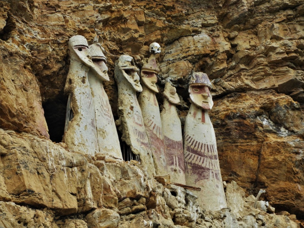 Nous poursuivons la découverte des environs et empruntons une longue piste sinueuse pour aller admirer les sarcophages de Karajía. Accrochés à la falaise, protégés des pillages,ils sont le témoignage des rites funéraires des Chachapoyas, peuple pré-inca habitant la région entre le IXè et le XVème siècle.