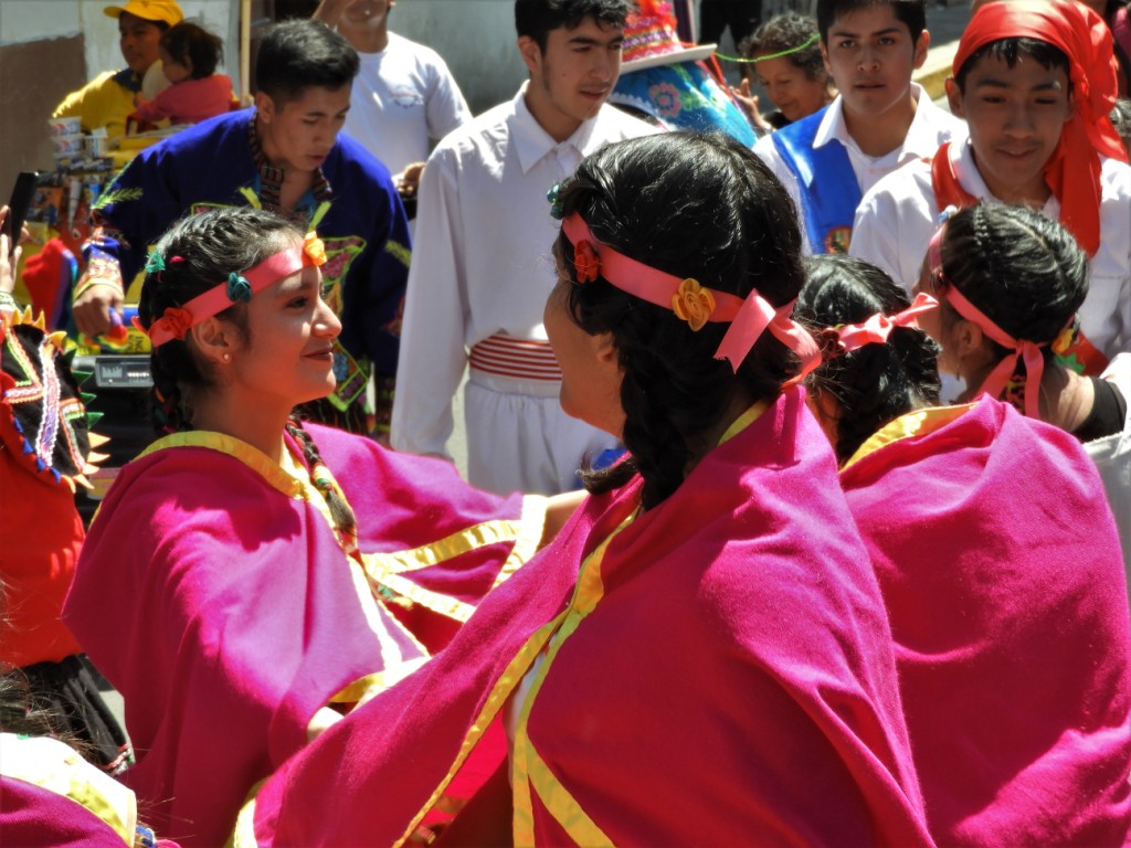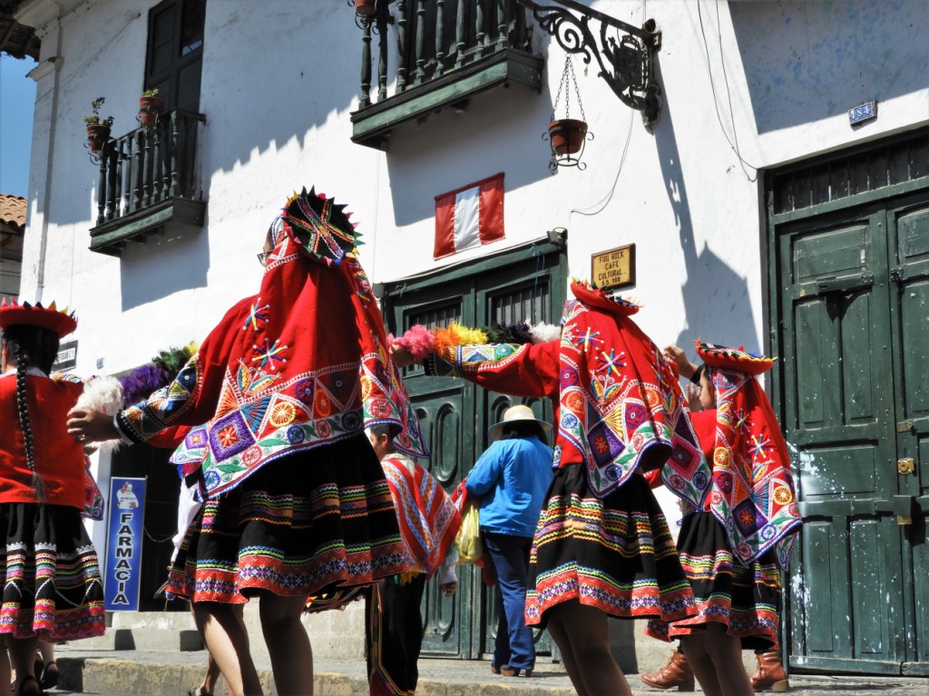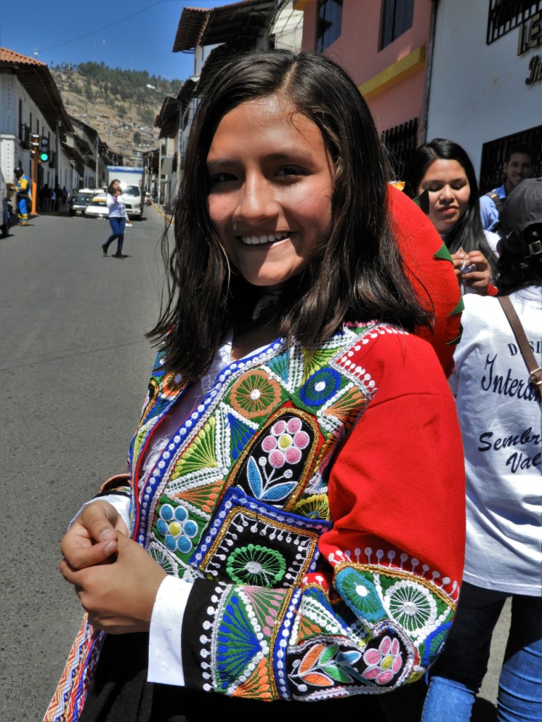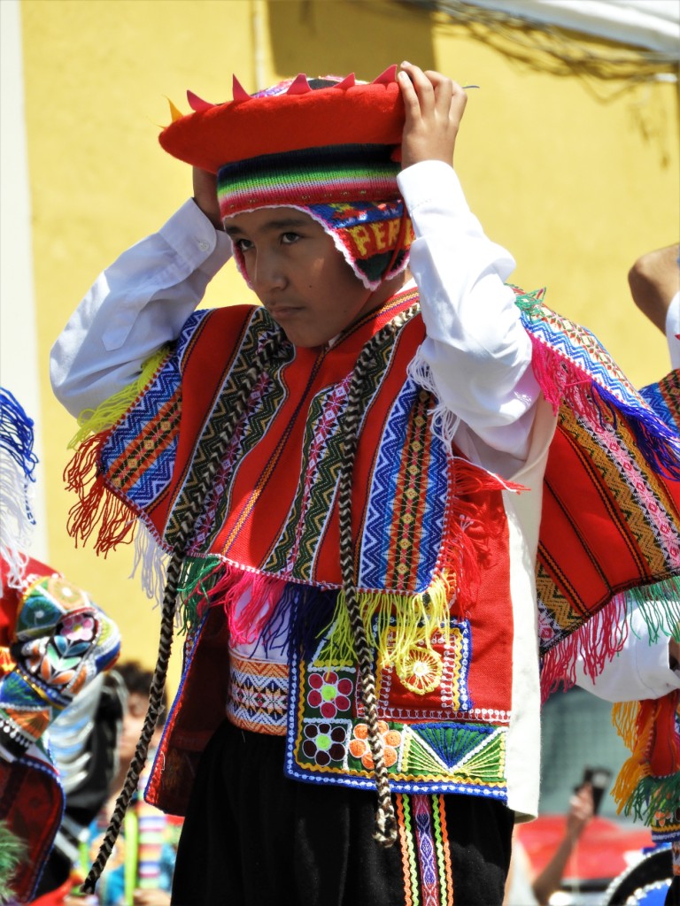 C’est dimanche. Sur la même place où 500 ans plus tôt, l’empereur Inca Atahualpa fut traitreusement assassiné par le conquistador Pizarro, marquant ainsi la chute de l’empire Inca, des enfants de tout le pays ont revêtu leur costume traditionnel pour défiler et présenter les danses de leur région !