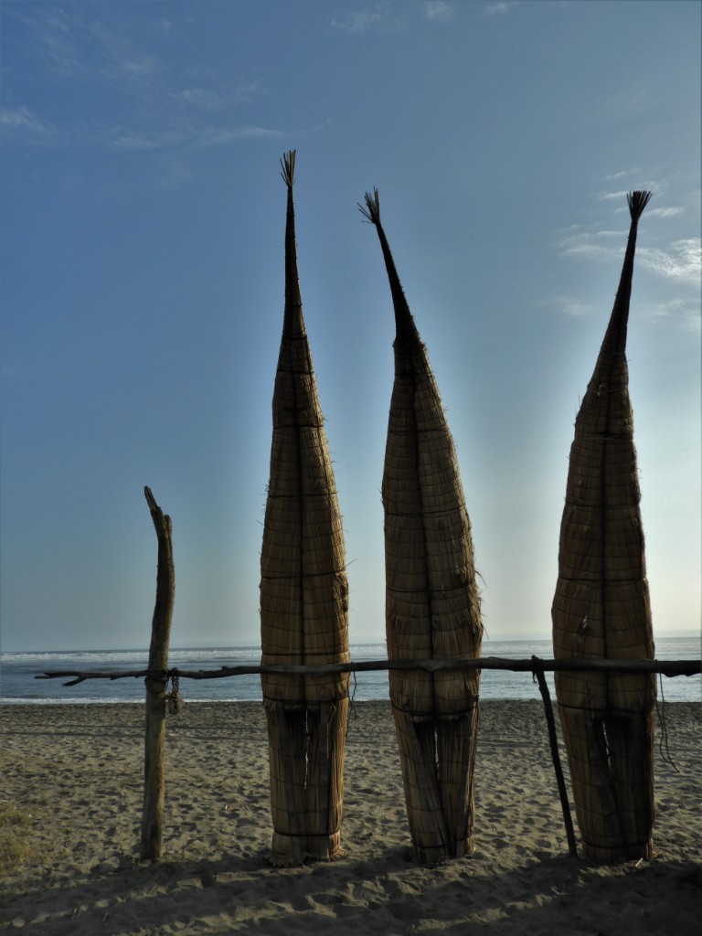 Avant d’atteindre la ville côtière de Trujillo, nous profitons d’un joli bivouac sur la plage de Huanchaco où nous admirons les « caballitos de totora » ou petit chevaux de roseaux, les embarcations traditionnelles des pêcheurs de la région. Alors que le soleil décline, Léon s’exerce avec son nouveau cerf-volant gentiment offert par une famille de locaux.