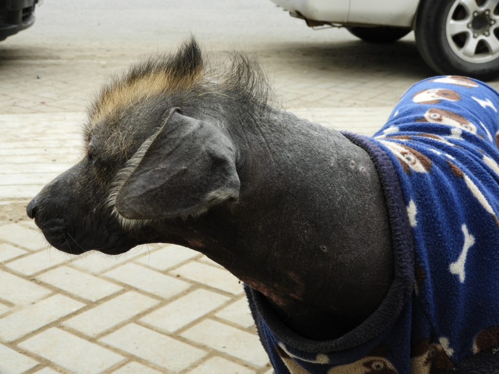 Les lieux sont gardés par deux chiens incas ou chiens nus du Pérou, une race locale sans poils hormis cette petite crête qui lui donne un air de punk !