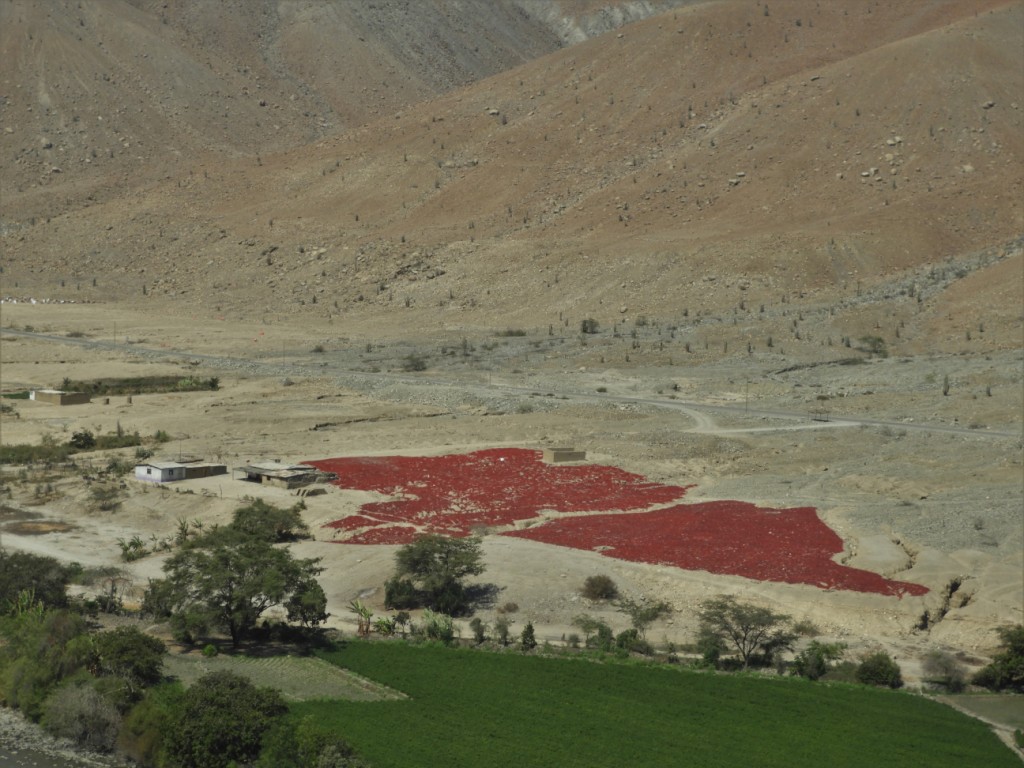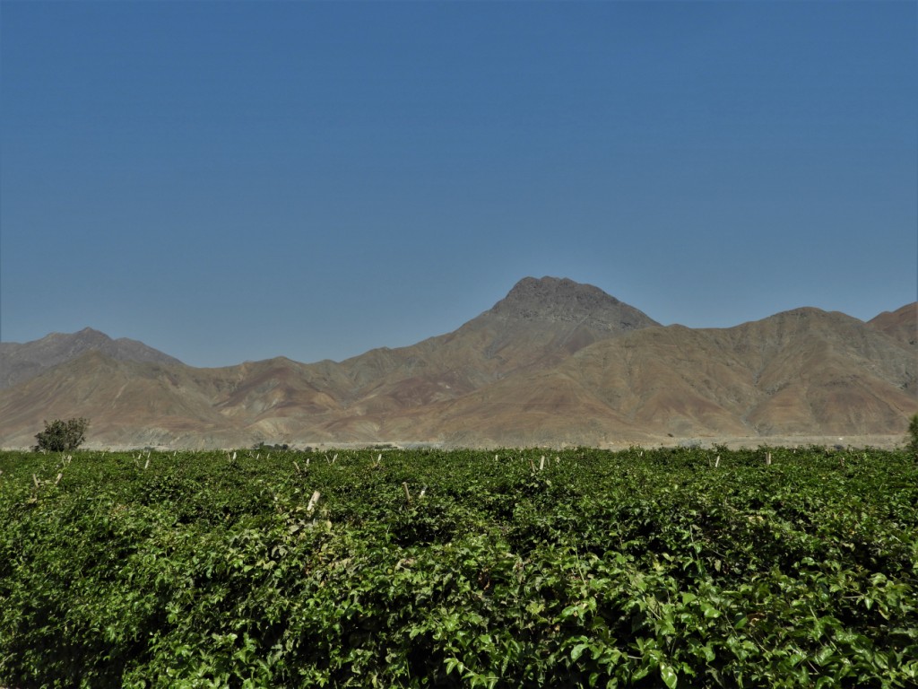 Nous poursuivons vers le sud puis quittons la côte pour suivre la vallée du rio Santa et remonter vers la cordillère des Andes. Avant d’atteindre l’étroit cañon del Pato et son enchaînement d’effrayants tunnels étroits, nous observons ces drôles de paysages de montagnes arides, au creux desquels le « miracle » de l’irrigation permet le développement d’une culture verdoyante.