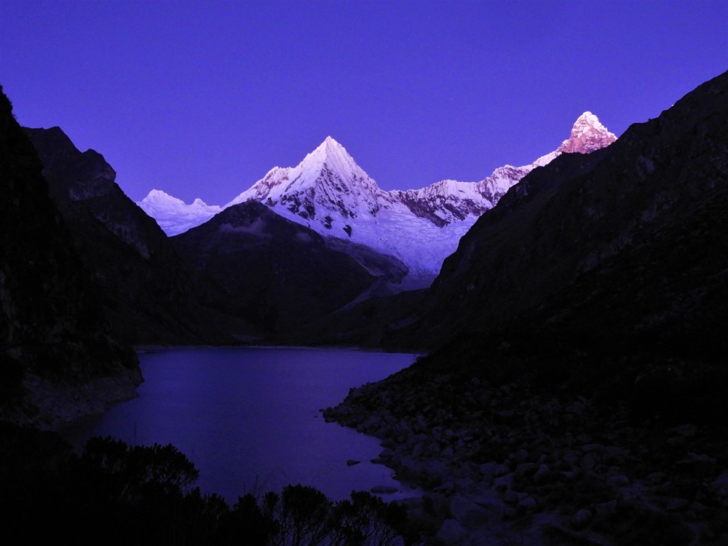 Nous passons une belle soirée à admirer la nuit étoilée s’installer dans cet incroyable bout du monde avec en toile de fond, l’Artesonraju, glacier si beau qu’il fut choisi comme logo du célèbre studio hollywoodien Paramount Pictures.