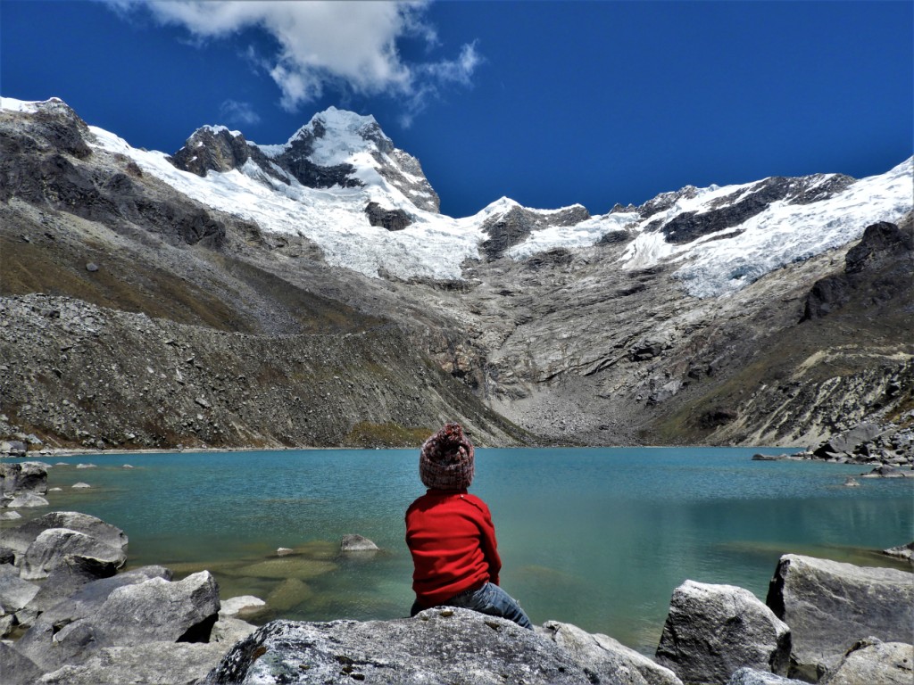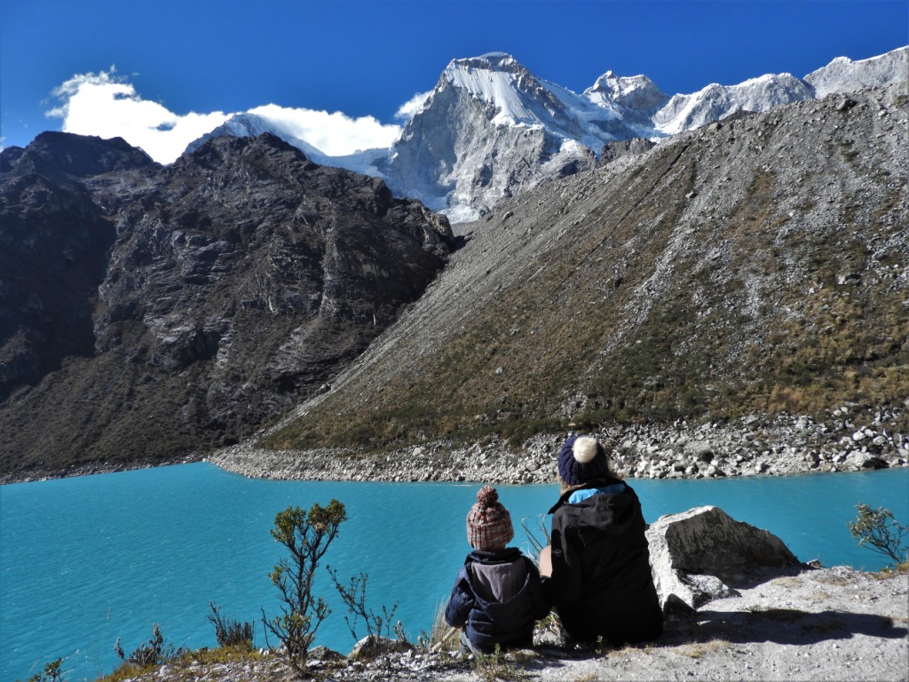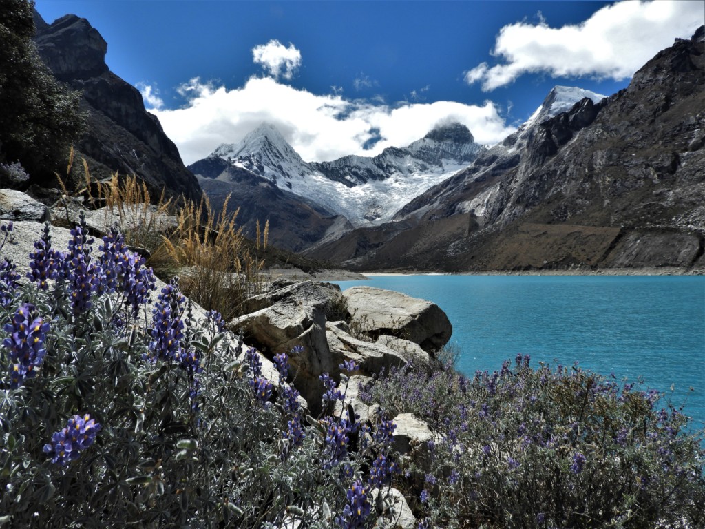 Nous nous enfonçons toujours plus loin et plus haut dans la cordillère et atteignons quelques heures plus tard la lagune de Parón. L’arrivée devant cette étendue d’eau turquoise installée à plus de 4000m d’altitudes au milieu de glaciers tous plus beaux les uns que les autres nous laisse sans voix !